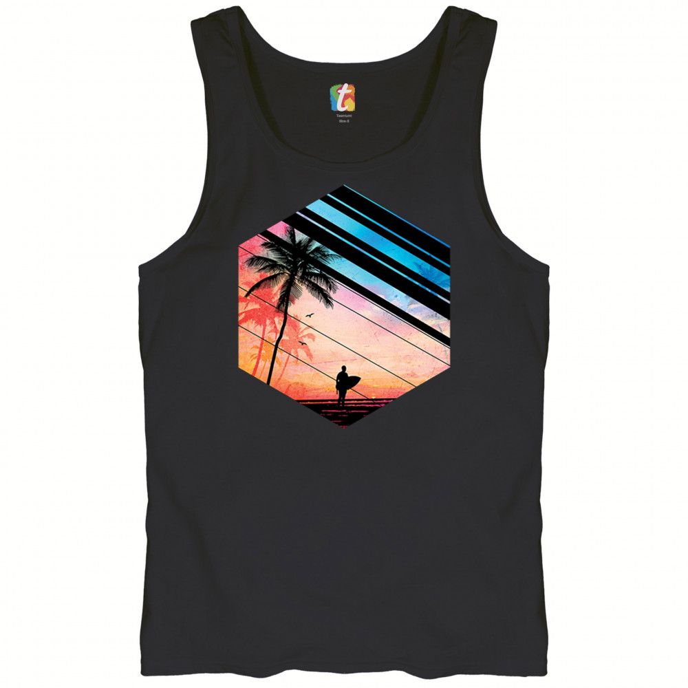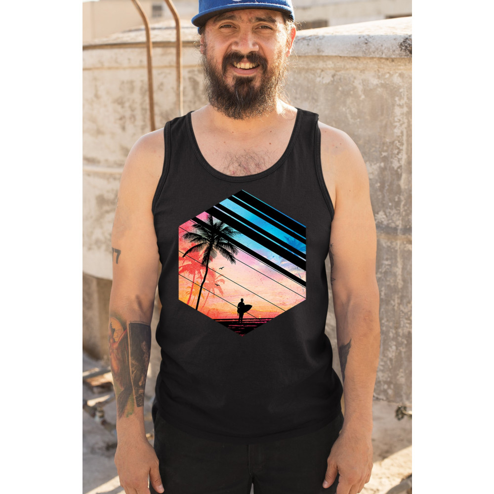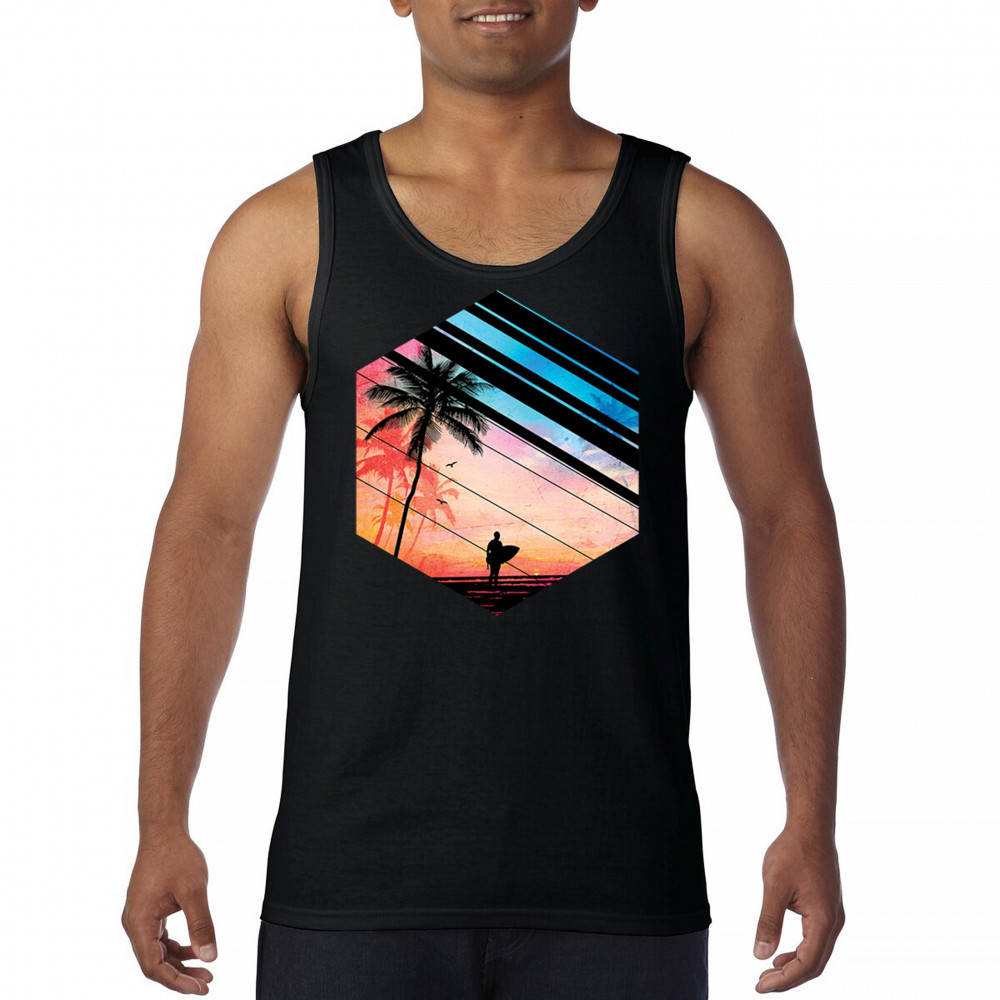 SURFER PARADISE tank top vintage summer surfing wave beach surfboard men's top black