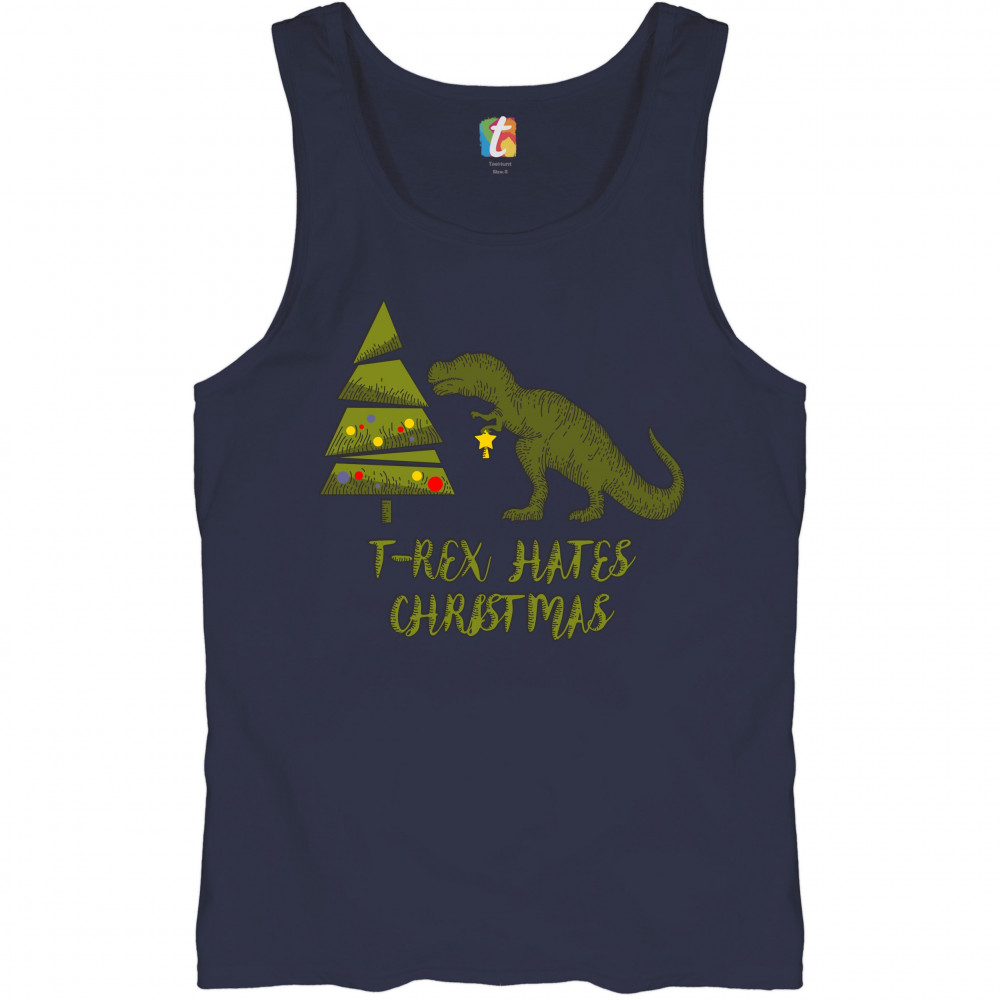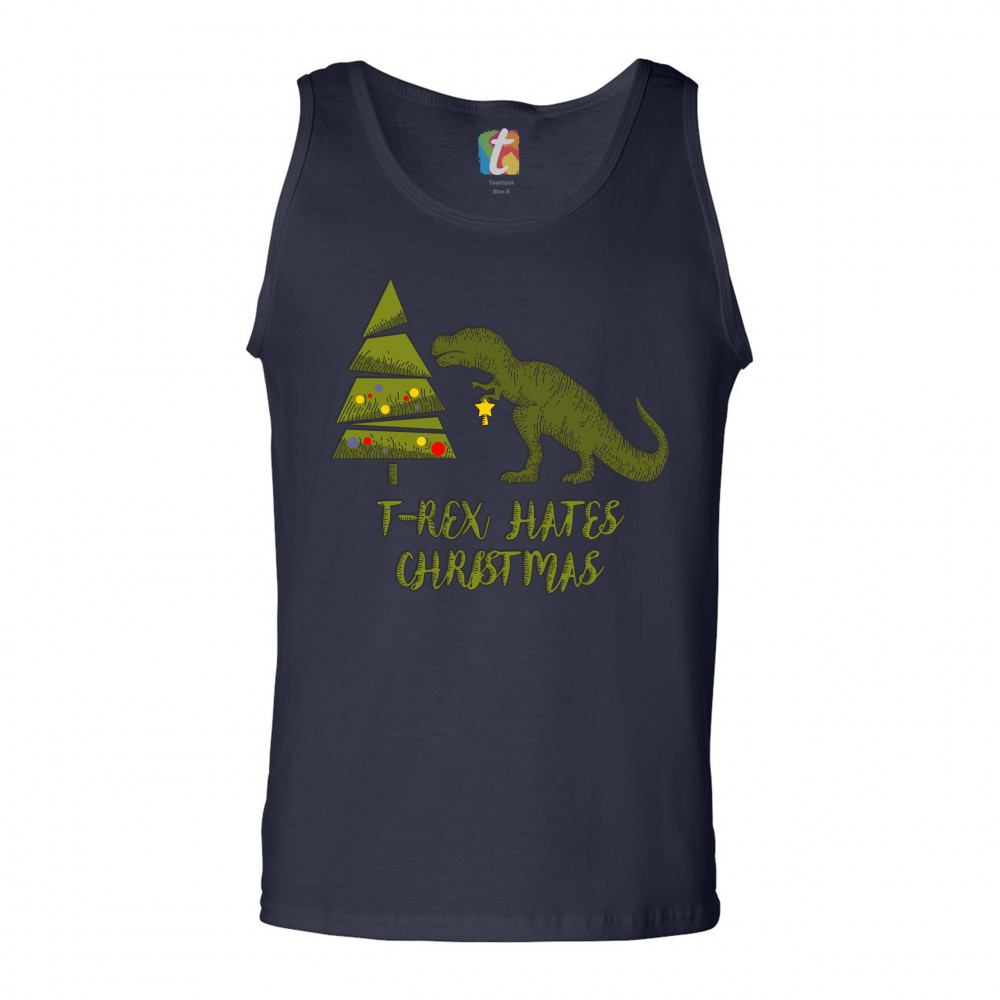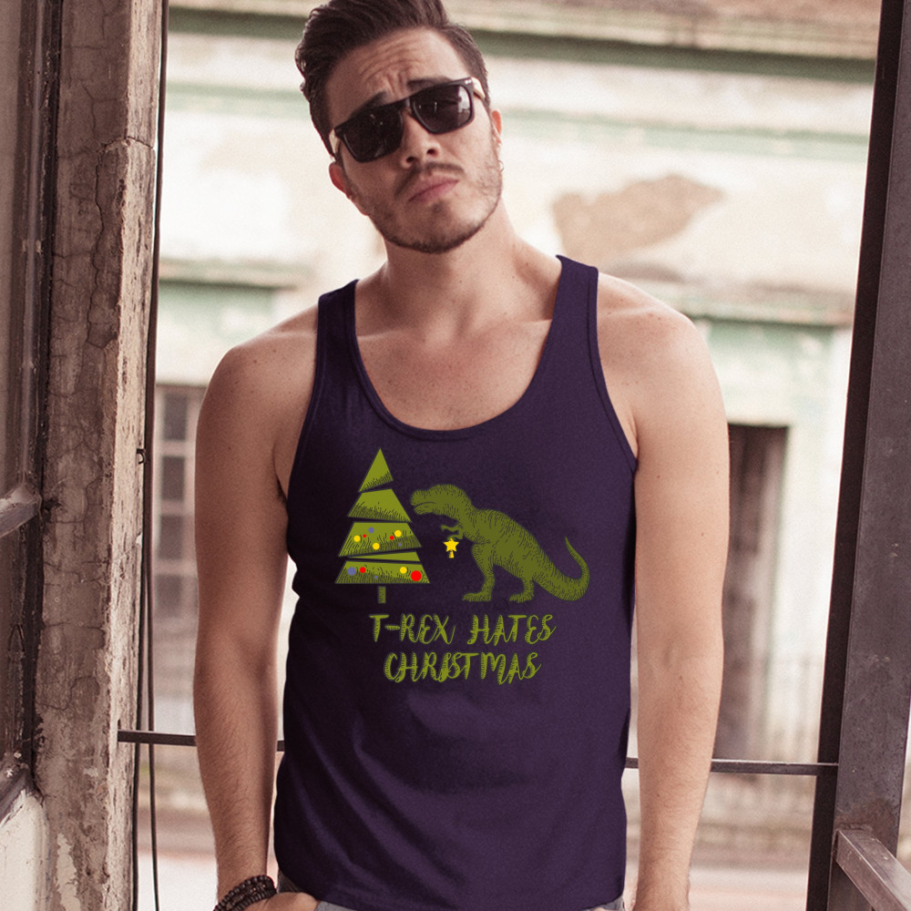 T-REX HATES CHRISTMAS tank top funny dinosaur xmas eve festive men's top navy blue