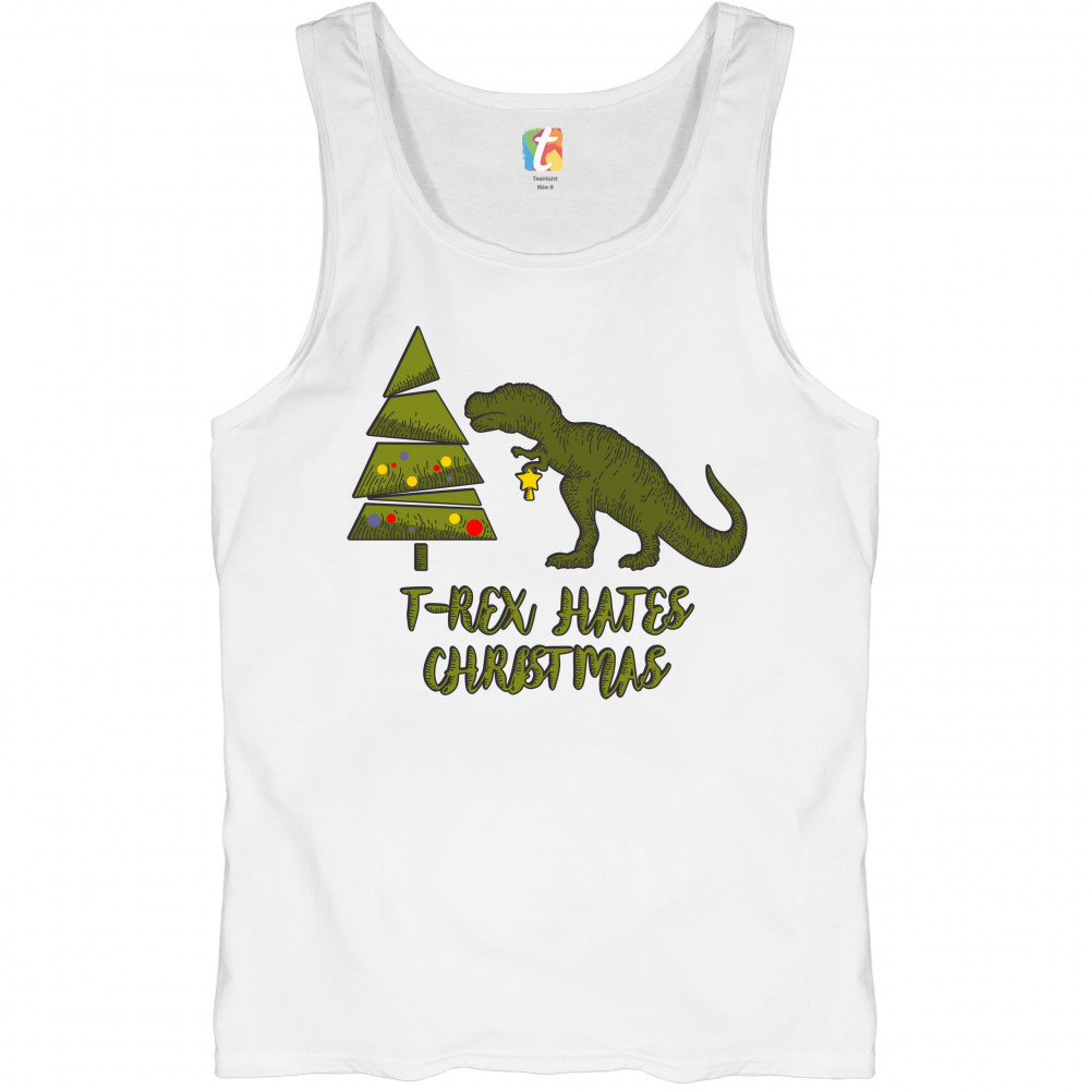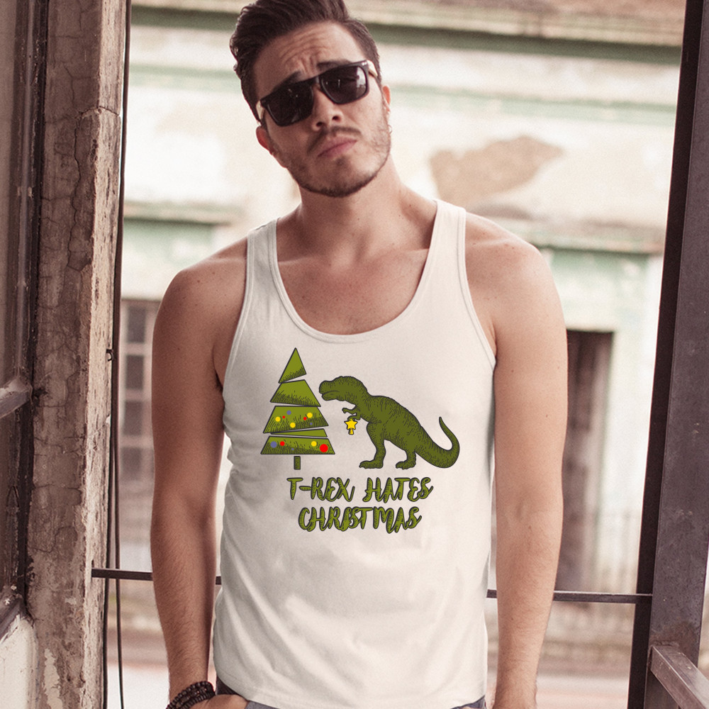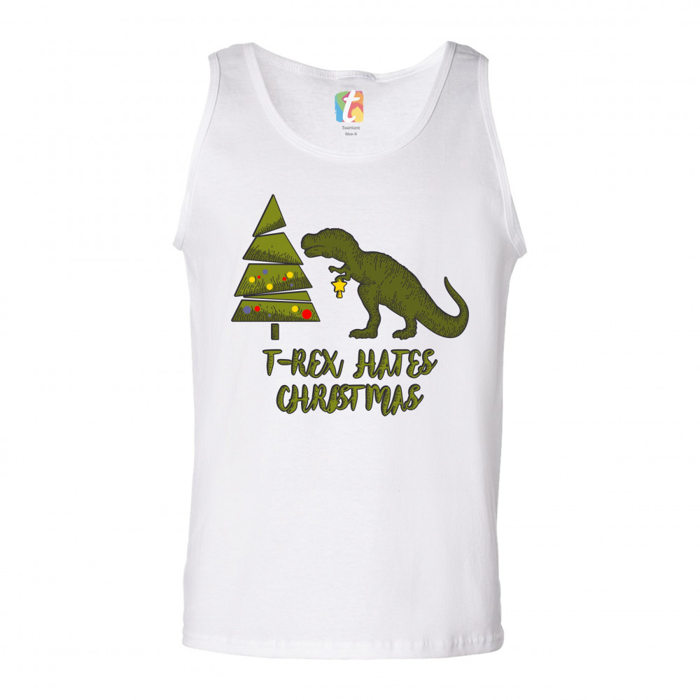T-REX HATES CHRISTMAS tank top funny dinosaur xmas eve festive men's top white