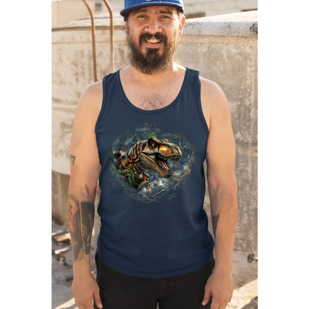 Step into the Jurassic jungle with this electrifying t rex design. With sharp teeth, rugged scales, and mist swirling through lush greenery, this tyrannosaurus roars to life. Perfect for dinosaur fans, fossil lovers, and nature explorers. Wear it to museums, theme parks, or wherever ancient beasts still rule the imagination.