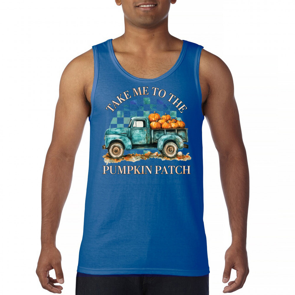 Celebrate autumn in style with the "Take Me to the Pumpkin Patch" design, featuring a vintage truck and festive pumpkins—perfect for fall lovers!