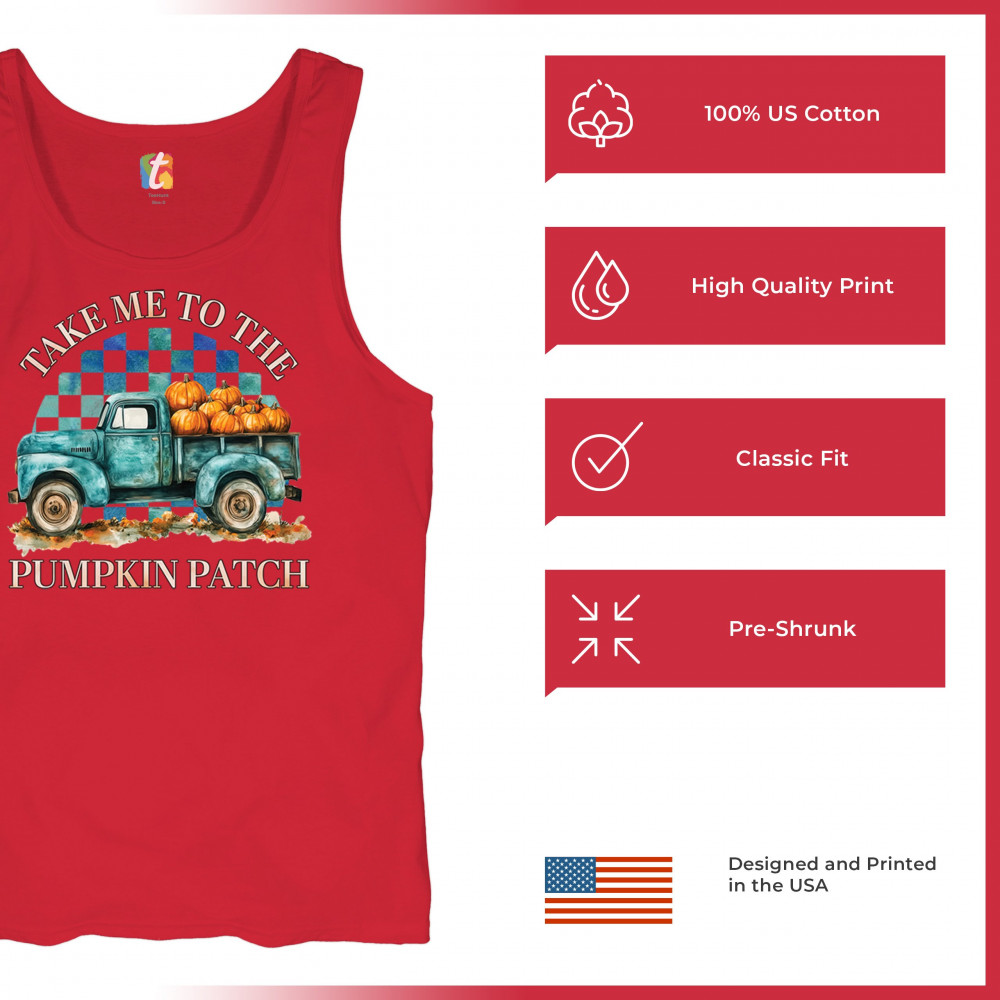 Celebrate autumn in style with the "Take Me to the Pumpkin Patch" design, featuring a vintage truck and festive pumpkins—perfect for fall lovers!