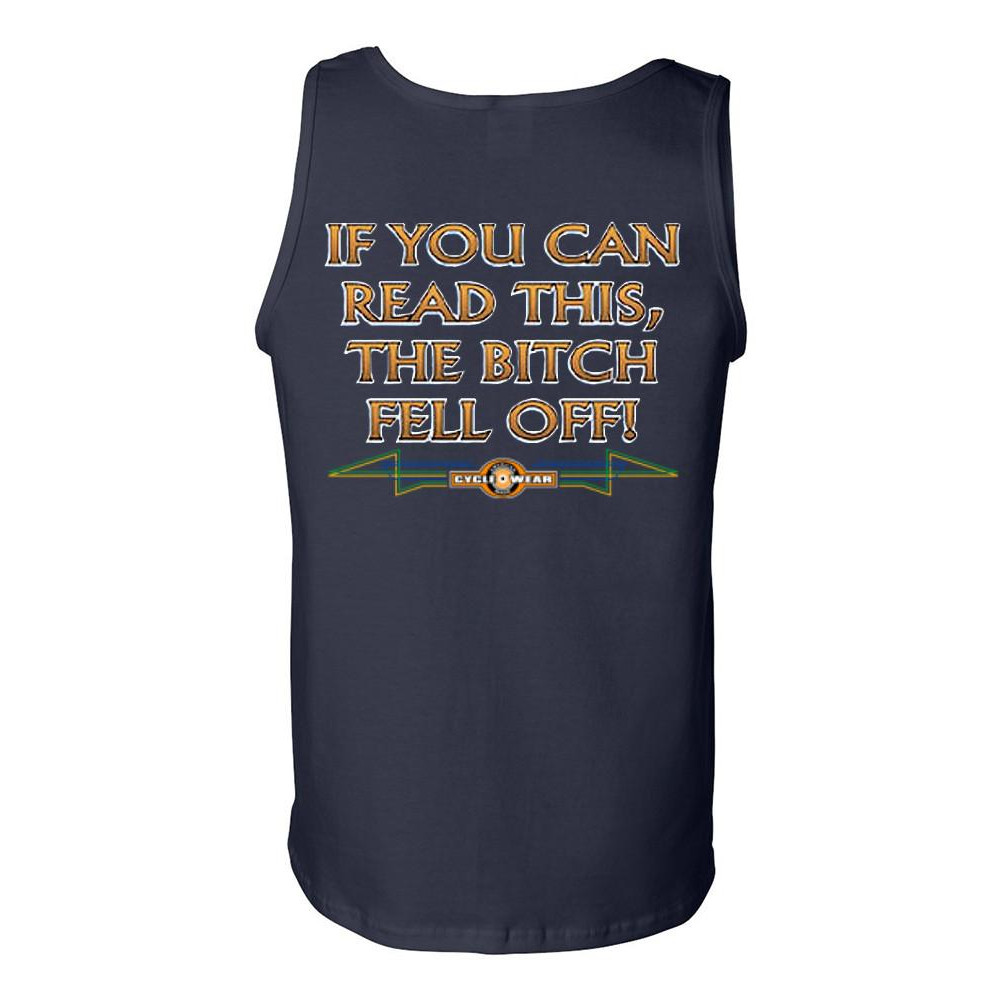 IF YOU CAN READ THIS, THE BITCH FELL OFF tank top funny biker motorcycle mc route 66 gym workout navy blue