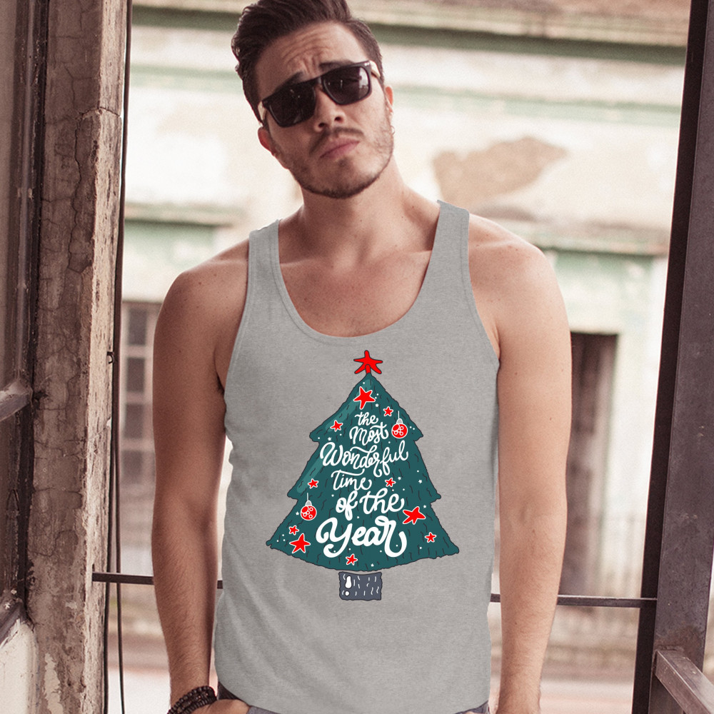 THE MOST WONDERFUL TIME OF THE YEAR tank top christmas tree xmas men's top gray