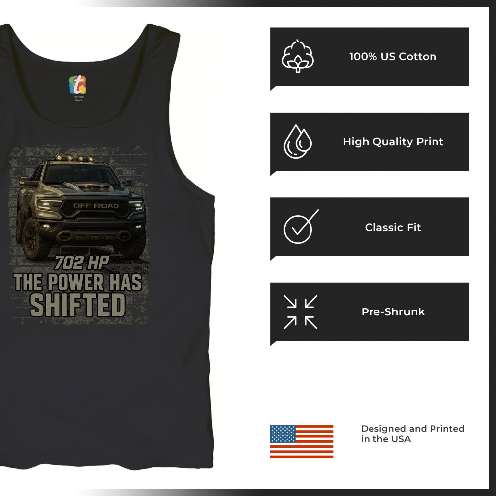 THE POWER HAS SHIFTED tank top 702hp pickup truck offroad muscle 4x4 men's top black