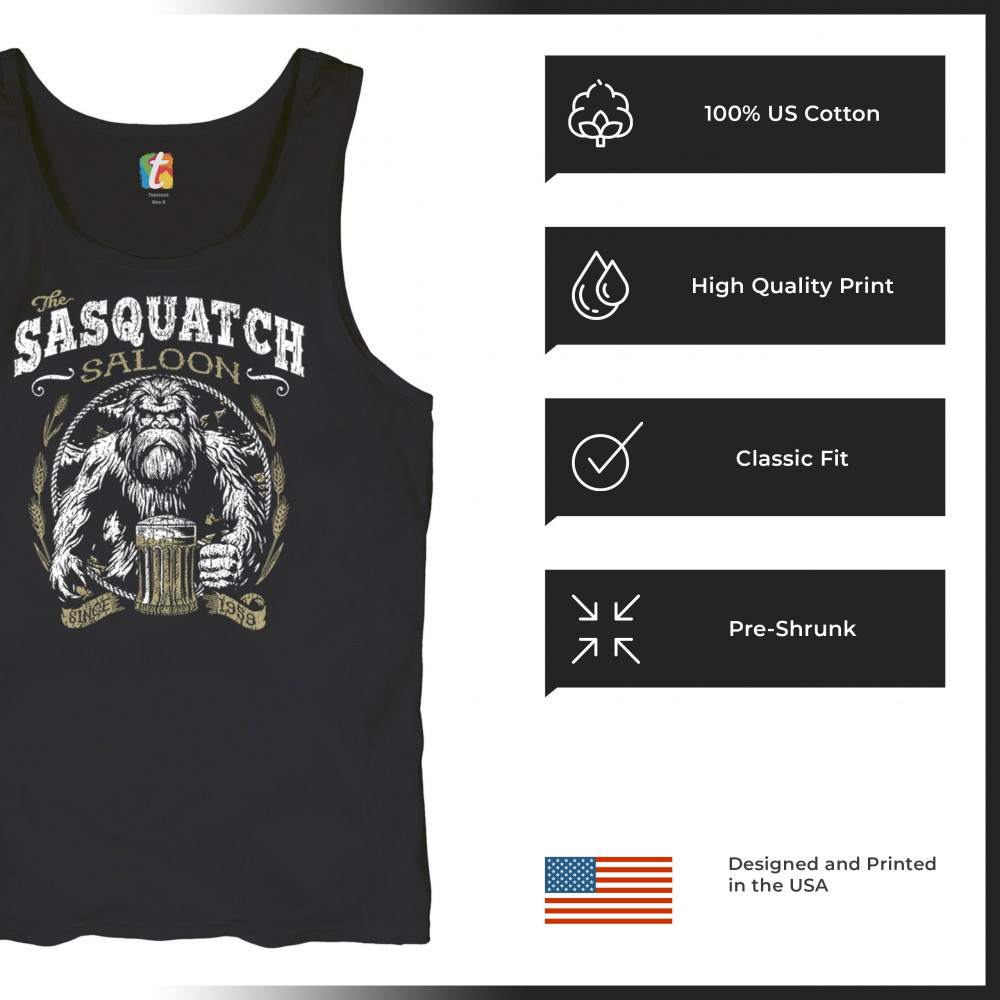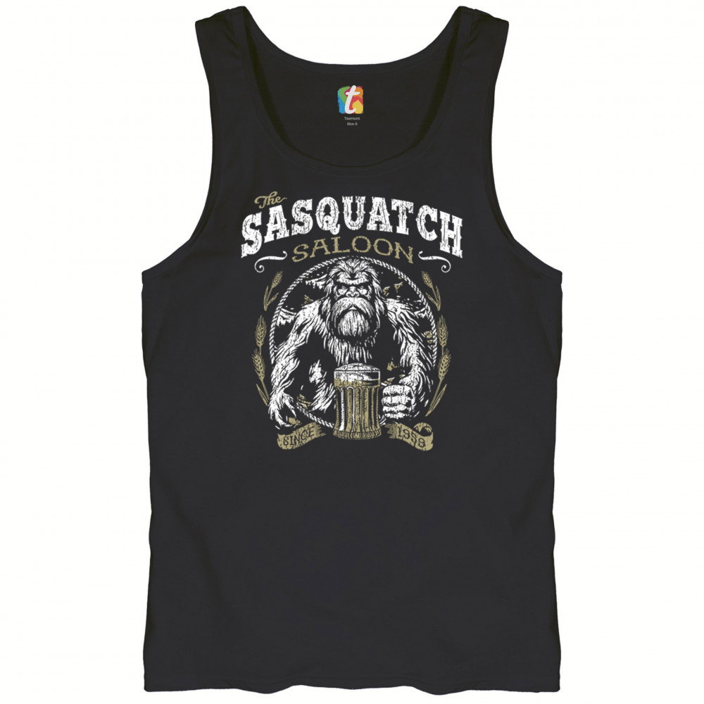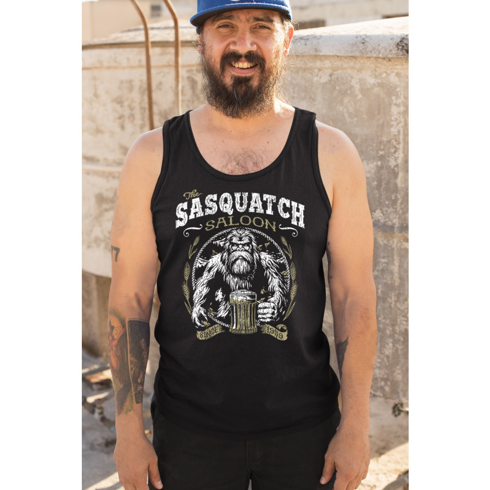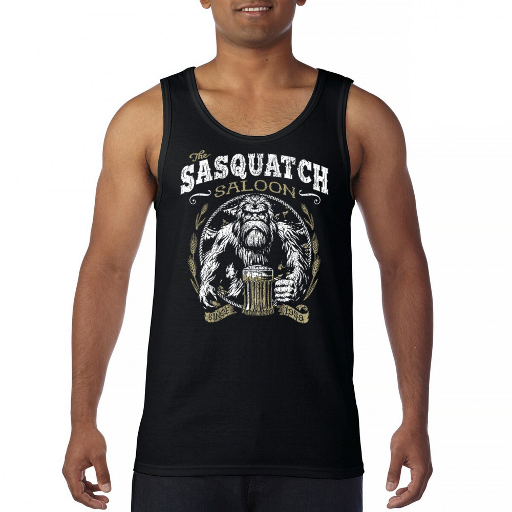 THE SASQUATCH SALOON tank top funny bigfoot beer drinking party yeti men's top black