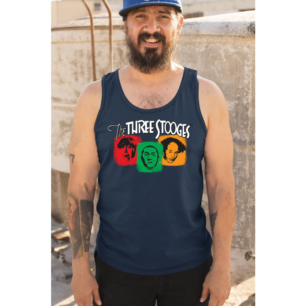 Capturing the essence of comedy, this design brings The Three Stooges into the modern era with a vivid, graphic portrayal. Each Stooge is highlighted in a distinct hue—red for Moe, green for Larry, and orange for Curly—mirroring their vibrant personalities that have transcended generations. This piece is a visual celebration, a colorful tribute to the laughter and joy they continue to bring into the world.