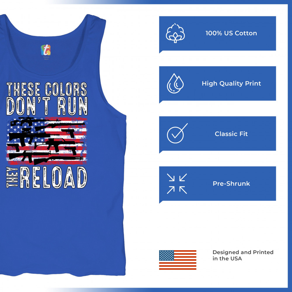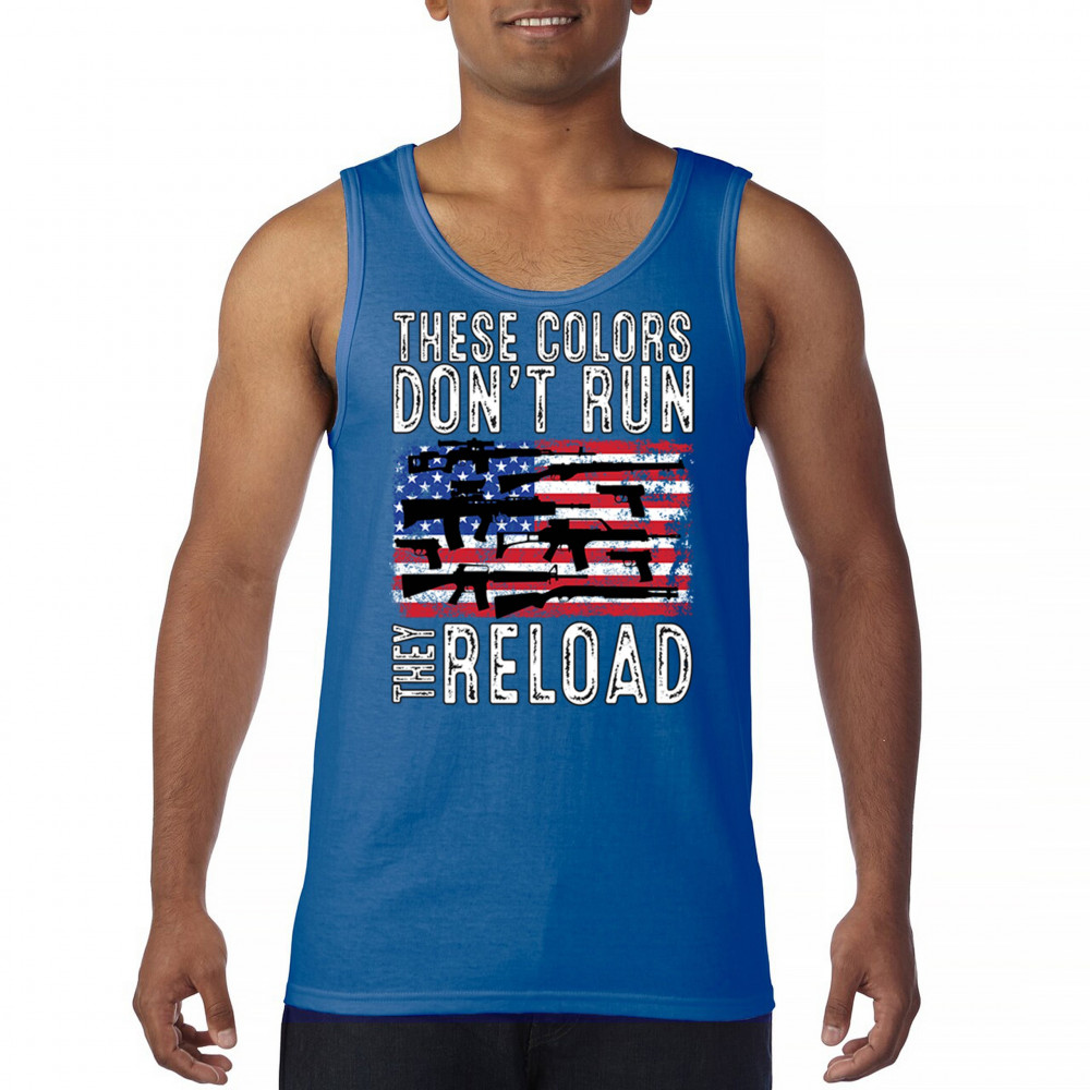 Explore the embodiment of patriotism with our 'These Colors Don't Run, They Reload' tee. A bold statement for those who honor freedom and resilience.