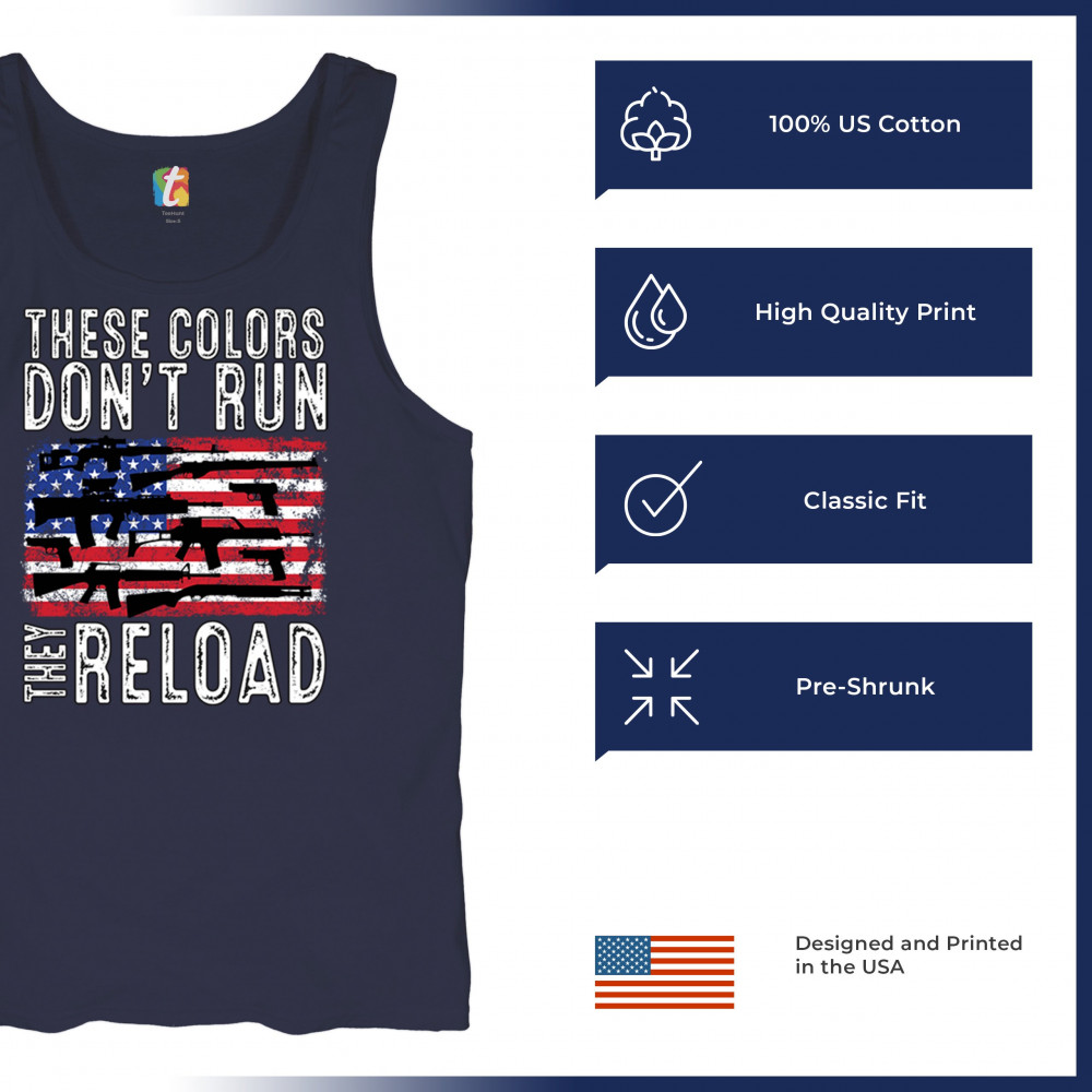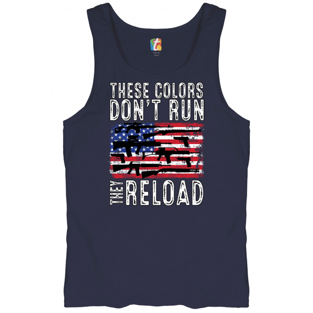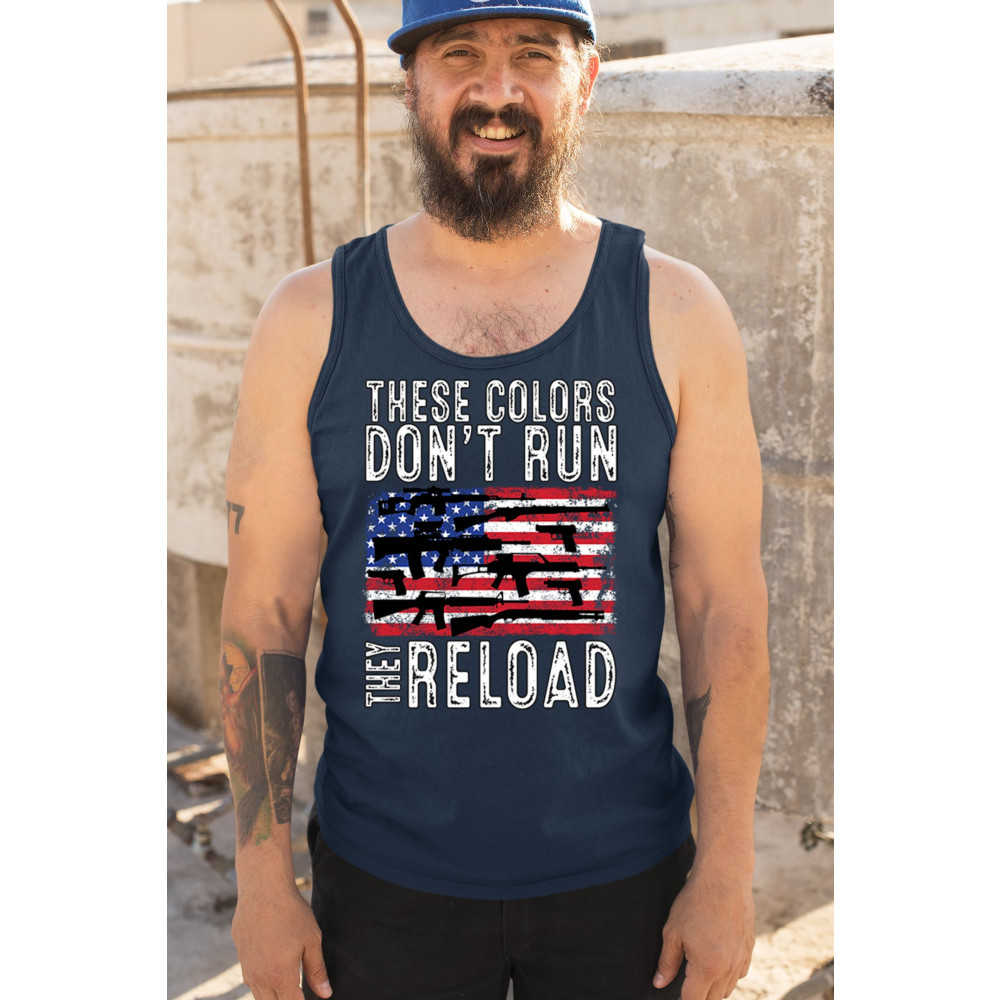 Explore the embodiment of patriotism with our 'These Colors Don't Run, They Reload' tee. A bold statement for those who honor freedom and resilience.