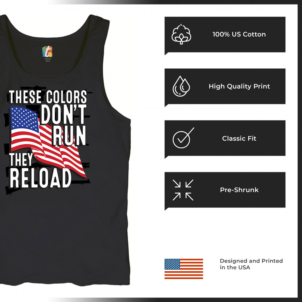 Discover the tee that boldly proclaims American resilience and liberty: 'These Colors Don't Run, They Reload'—a must-have for patriots and veterans.