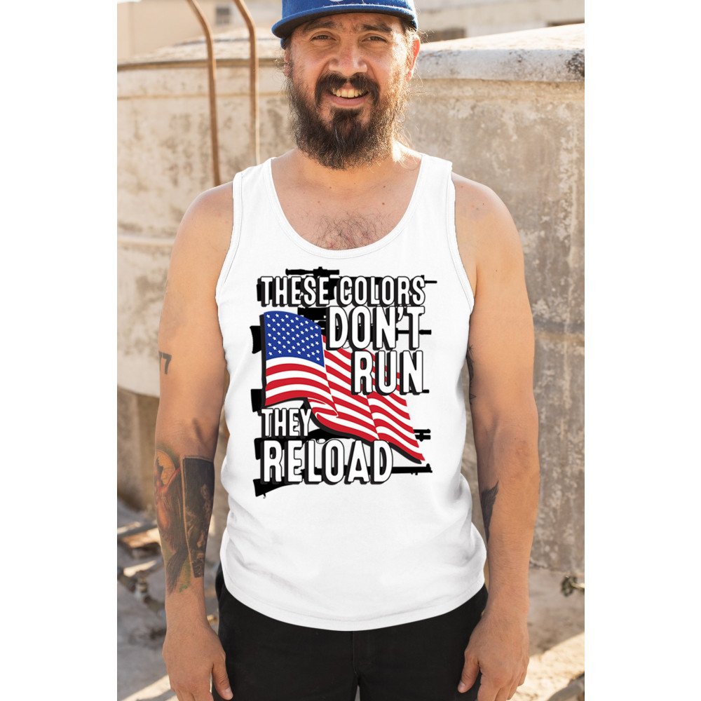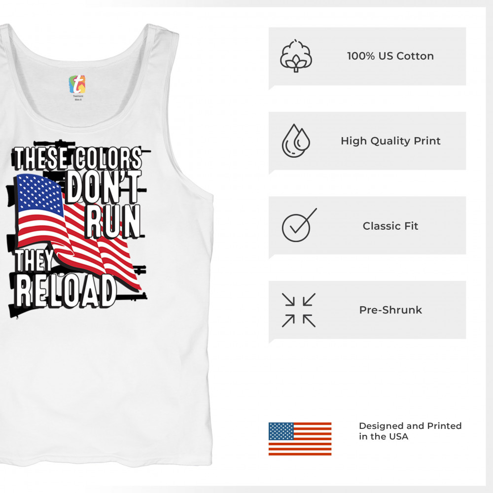 Discover the tee that boldly proclaims American resilience and liberty: 'These Colors Don't Run, They Reload'—a must-have for patriots and veterans.