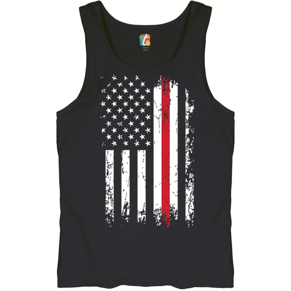 THIN RED LINE tank top american flag firefighter fire department men's top black
