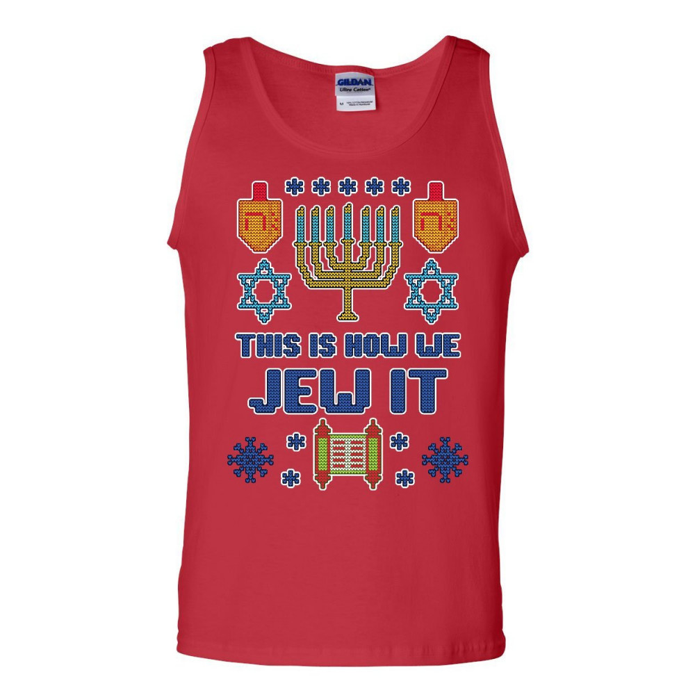 THIS IS HOW WE JEW IT UGLY SWEATER this is how we jew it ugly tank top hannukah torah menorah funny sleeveless red