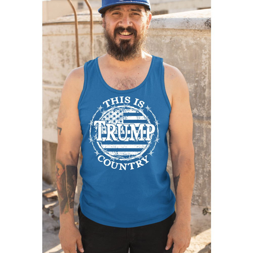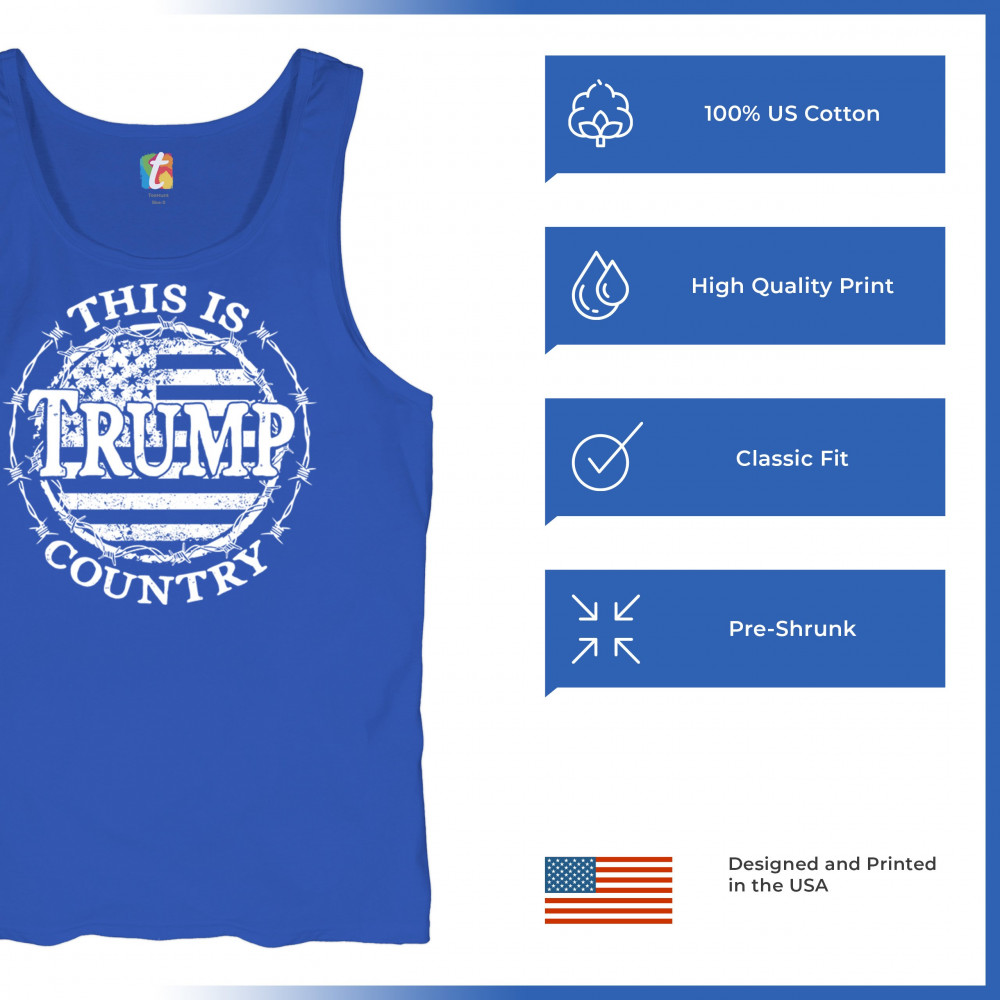 Show your support for Trump and JD Vance with the "Trump Country" design, featuring a distressed American flag and barbed wire. Perfect for rallies and patriotic events.