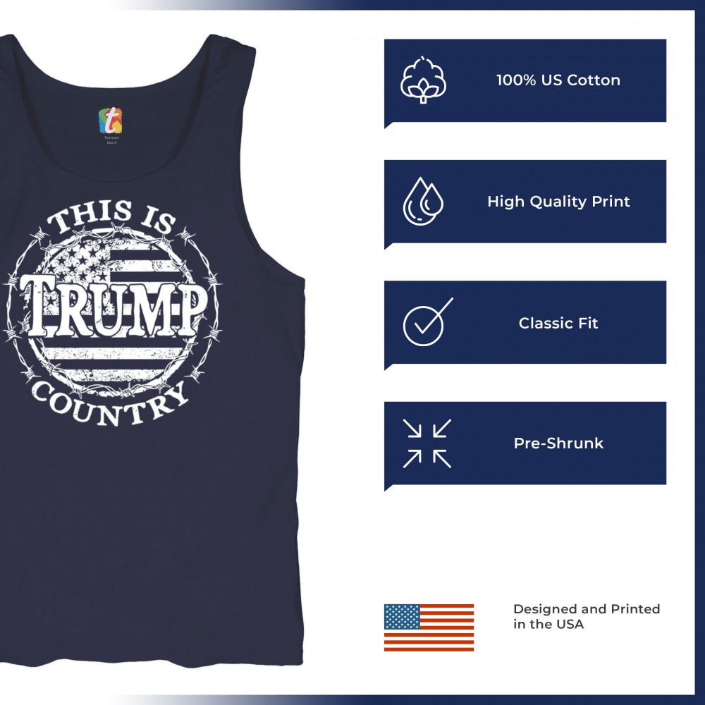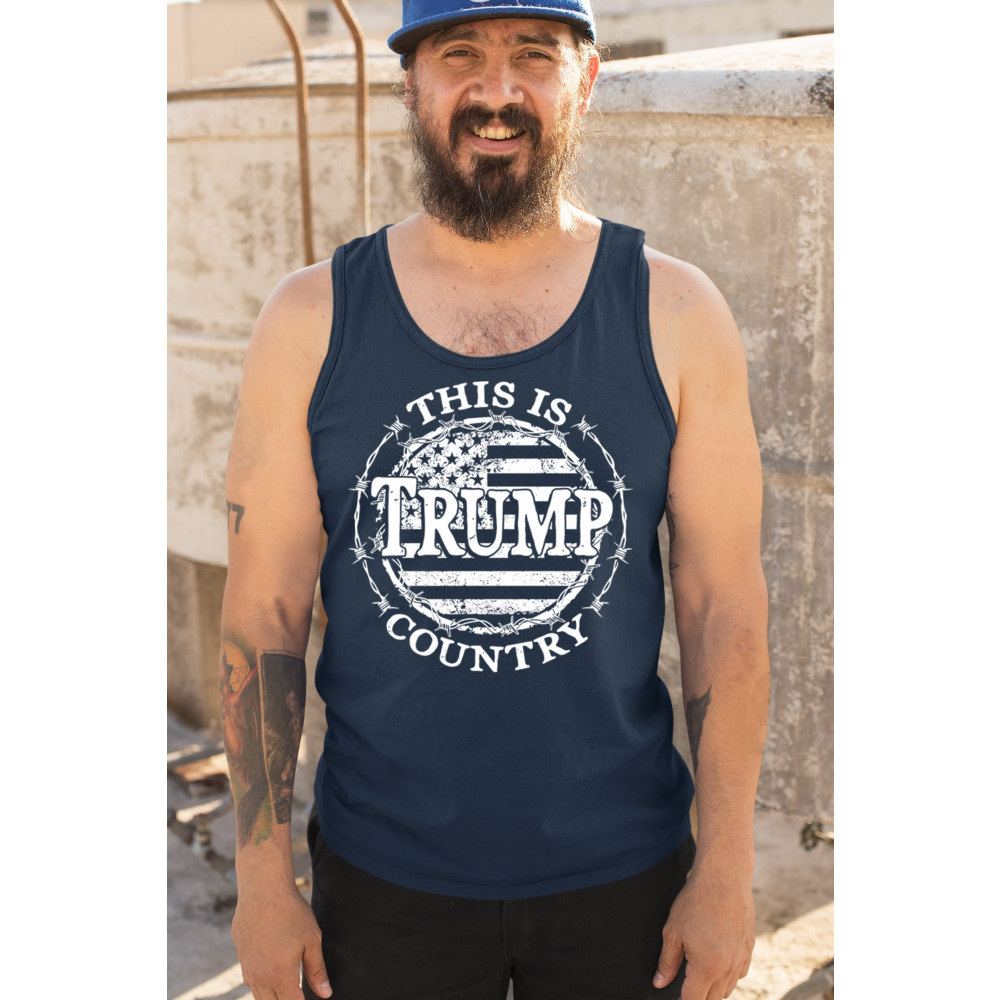 Celebrate your unwavering support for Trump and JD Vance with our exclusive "Trump Country" design. Featuring a vintage American flag encircled by barbed wire, this piece makes a strong statement against Kamala Harris and her policies. It's perfect for conservatives who believe in the America First movement. Whether you're attending a rally, political event, or simply expressing your patriotism, this design is ideal for showcasing your values and support for Trump's vision for America.