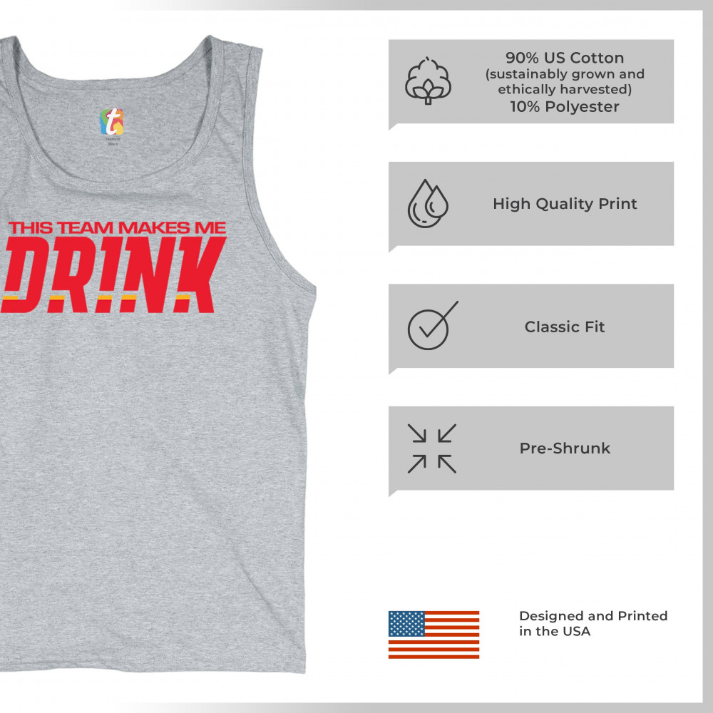 Add playoff energy to your Kansas football collection with this “This Team Makes Me Drink†design. Great for Fantasy Football rivalries, Game Day traditions, and tailgate party celebrations, it honors KC sports culture, football season pride, big game intensity, and the champions’ spirit. Built for Kansas fans who live the City of Fountains lifestyle and cheer on every KC playoff run.