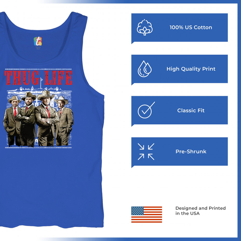Make a statement with the Thug Life T-shirt, a must-have for every Republican and Trump supporter who stands for America First. Designed for those who believe in We The People Have Spoken, this shirt is perfect for rallies, events, or everyday wear. Featuring bold imagery and high-quality materials, it's a tribute to conservative values, the Red Wave, and the party of common sense. Get yours today and show your patriotic spirit.
