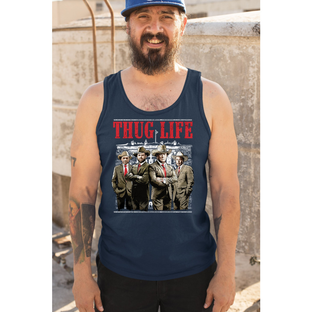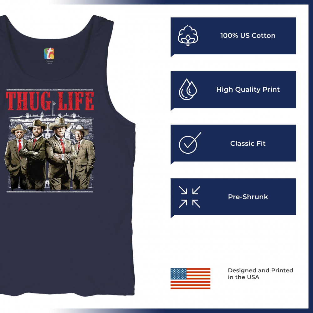 Make a statement with the Thug Life T-shirt, a must-have for every Republican and Trump supporter who stands for America First. Designed for those who believe in We The People Have Spoken, this shirt is perfect for rallies, events, or everyday wear. Featuring bold imagery and high-quality materials, it's a tribute to conservative values, the Red Wave, and the party of common sense. Get yours today and show your patriotic spirit.