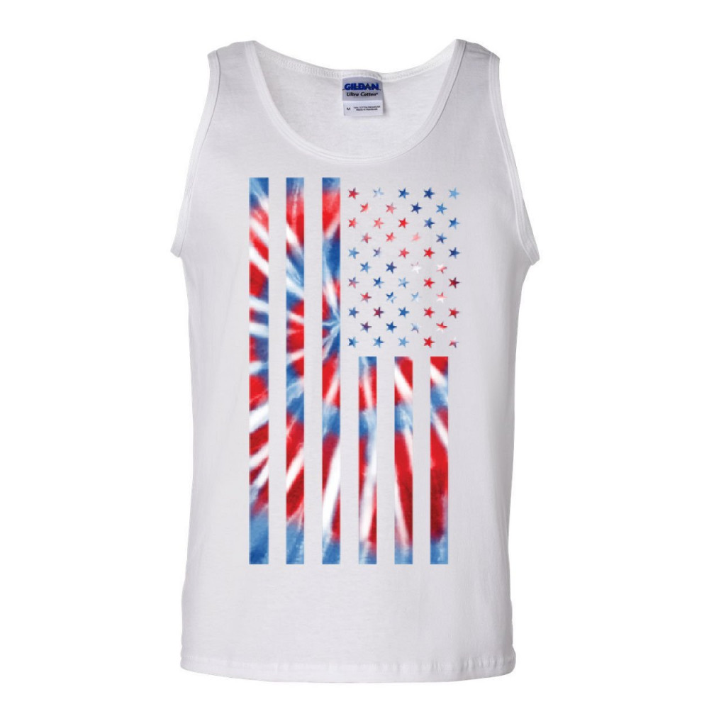 TIE-DYE AMERICAN FLAG tank top 4th of july stars and stripes sleeveless white