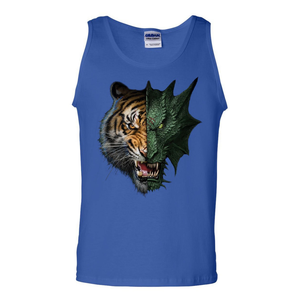 TIGER DRAGON FACE tiger and dragon face tank top animal beast fantasy monster fang sleeveless blue