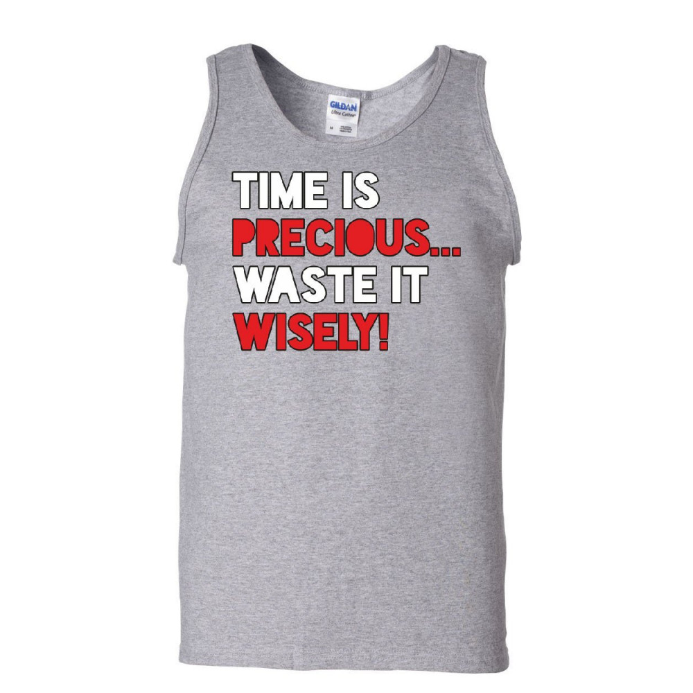 TIME IS PRECIOUS WASTE IT WISELY! time is precious waste it wisely tank top college humor lazy fun sleeveless gray