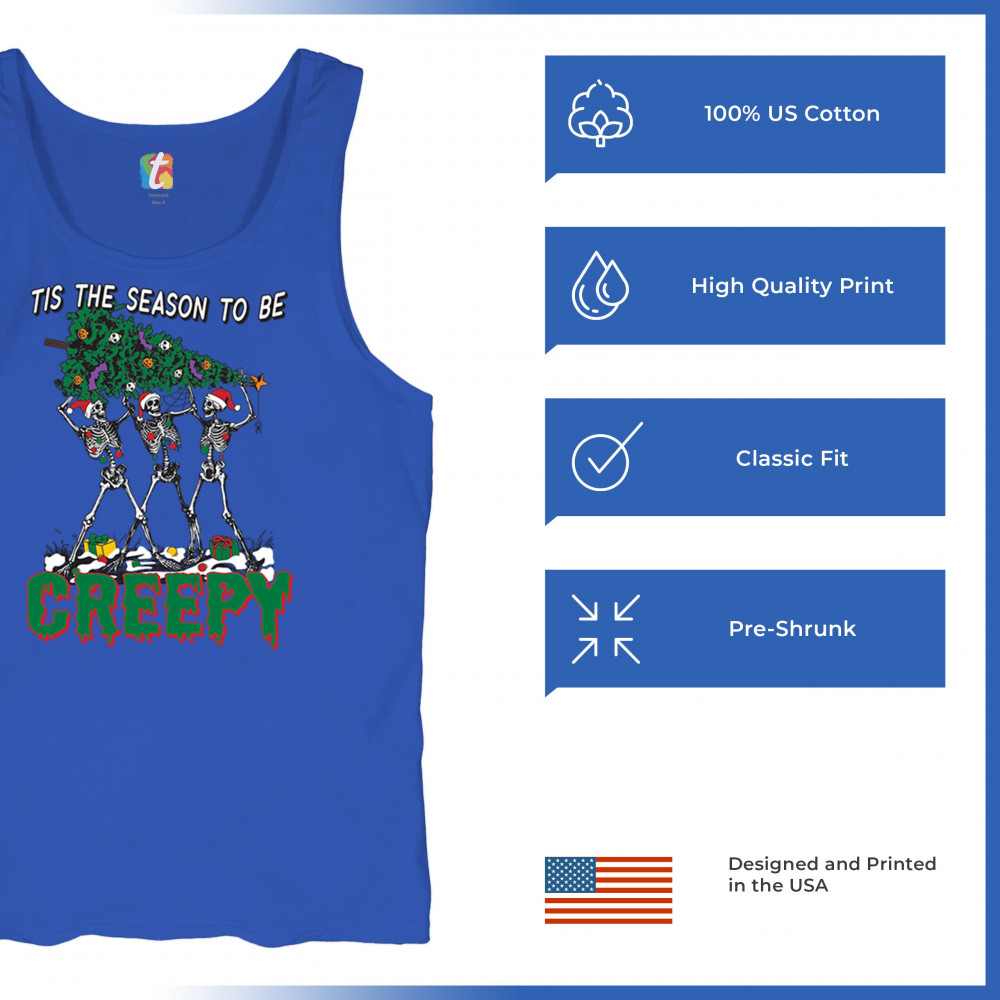 Spooky meets festive with "Tis the Season to Be Creepy" skeleton Christmas design. Perfect for holiday parties, Secret Santa, and unique gifts.