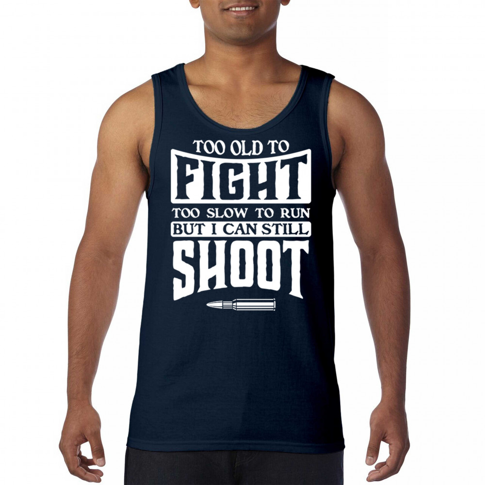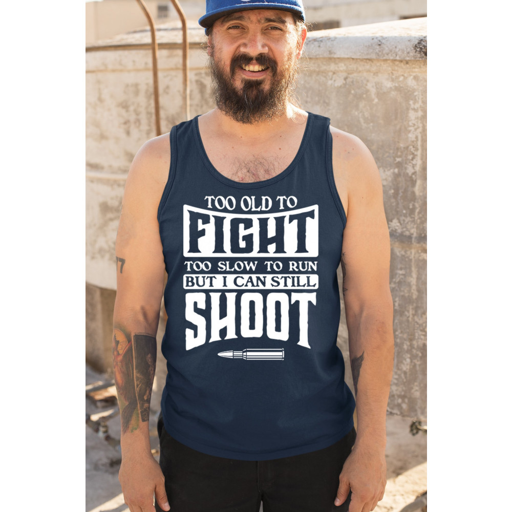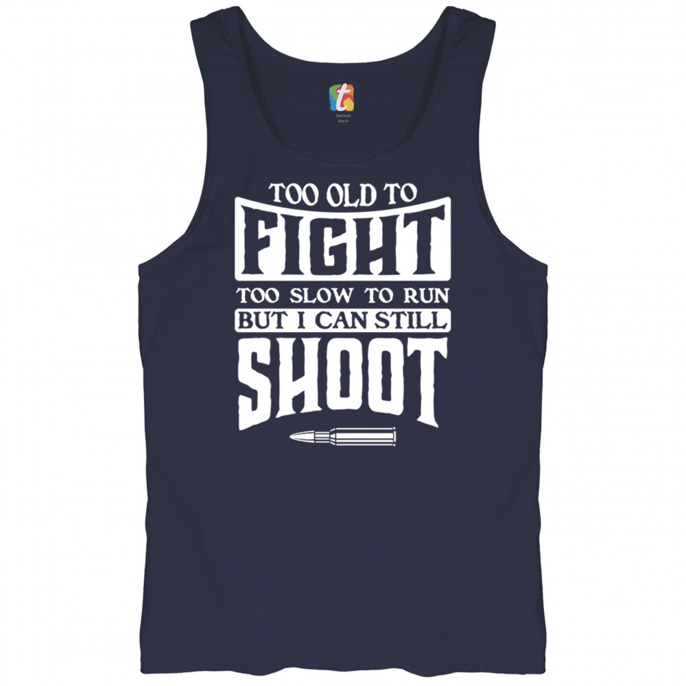 TOO SLOW TO RUN BUT CAN STILL SHOOT tank top 2nd amendment gun right men's top navy blue
