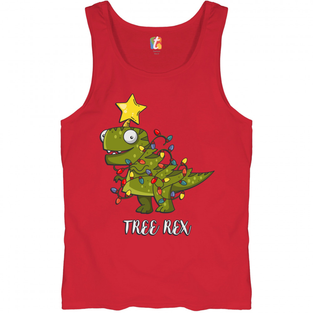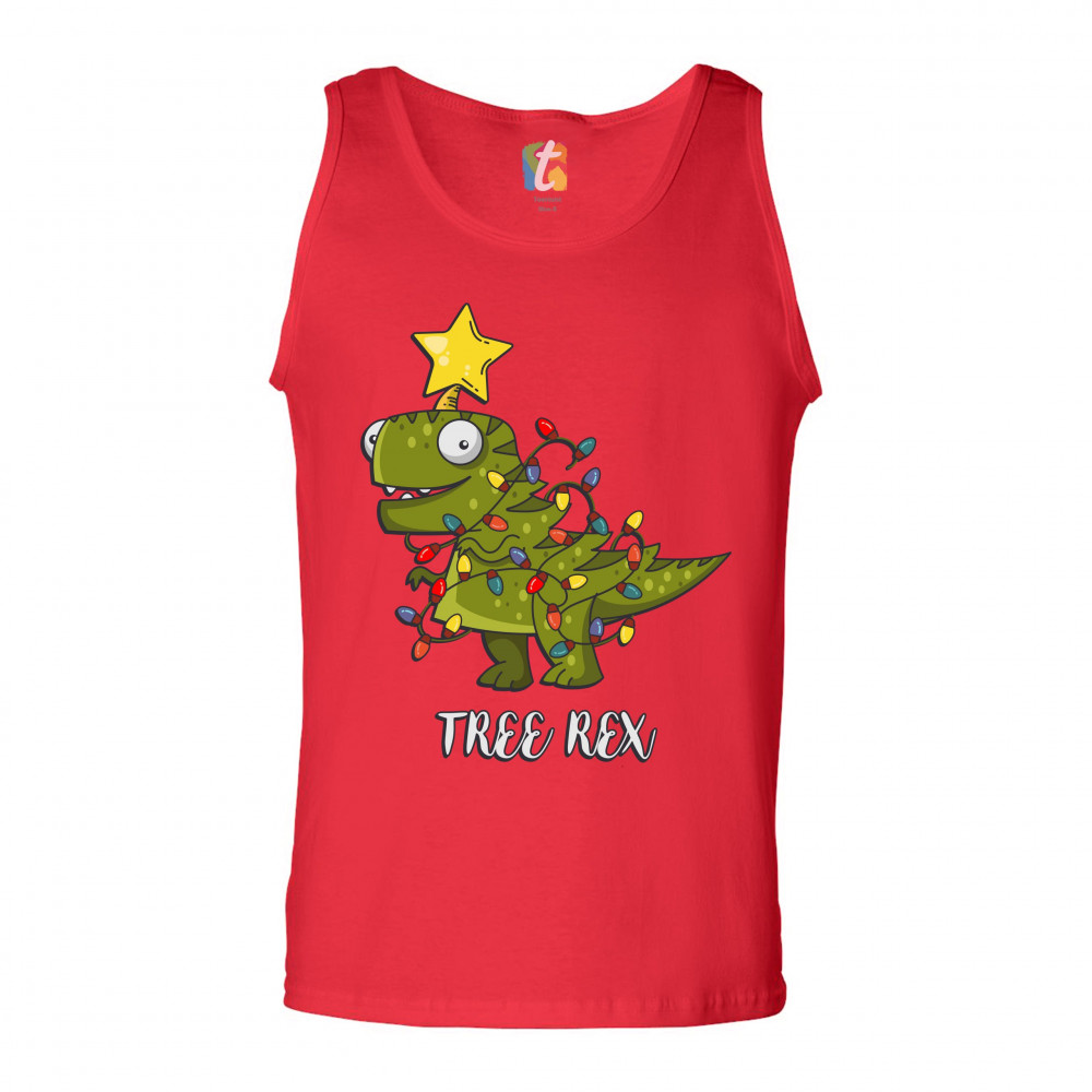 TREE REX tank top funny tyronnasaurus rex christmas tree dinosaur men's top red