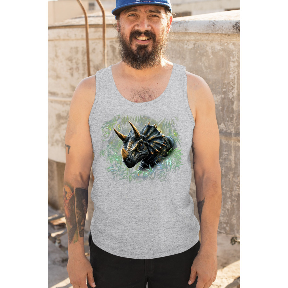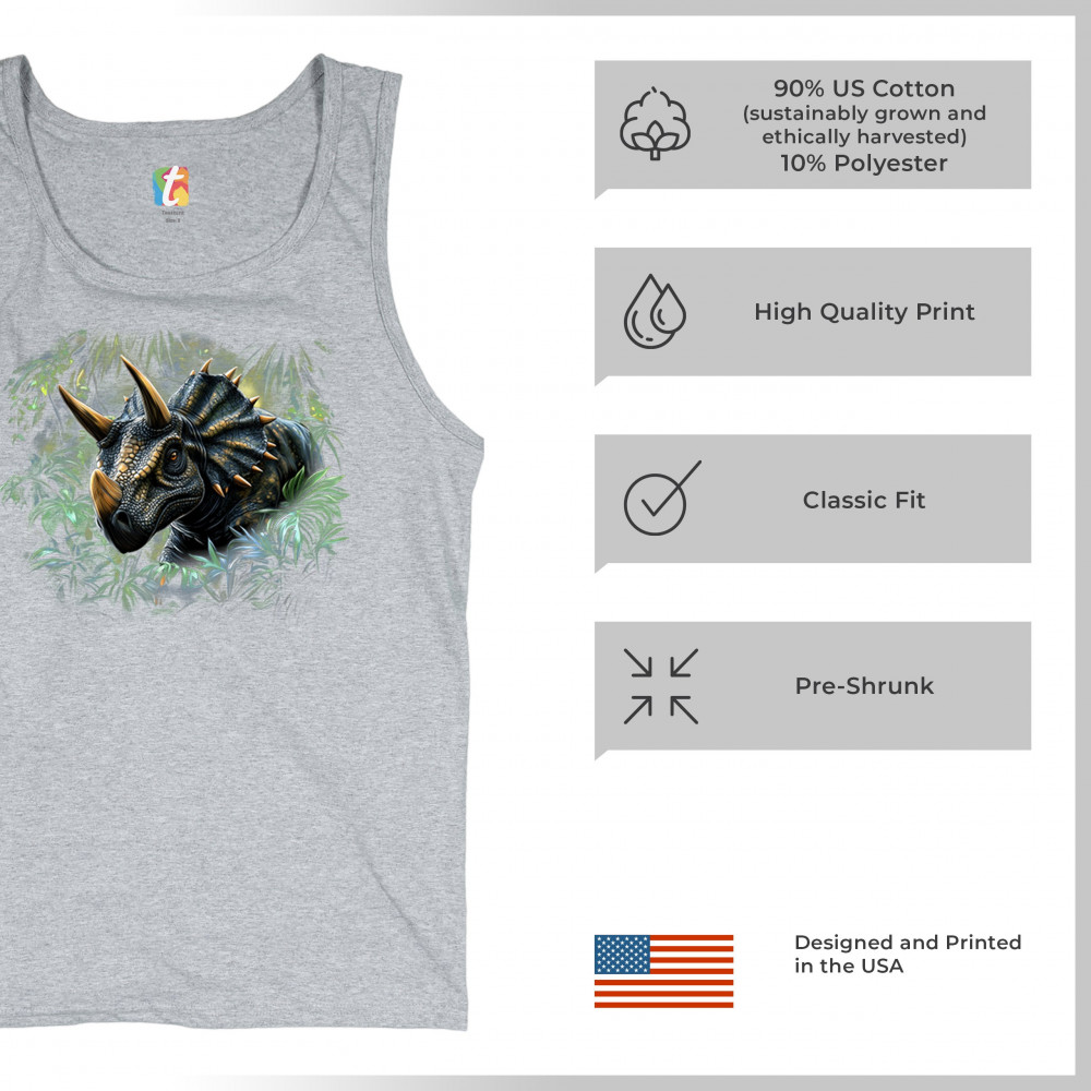 Realistic triceratops in jungle setting. Great for dino fans, fossil lovers, Jurassic exhibits, and prehistoric outdoor adventures.