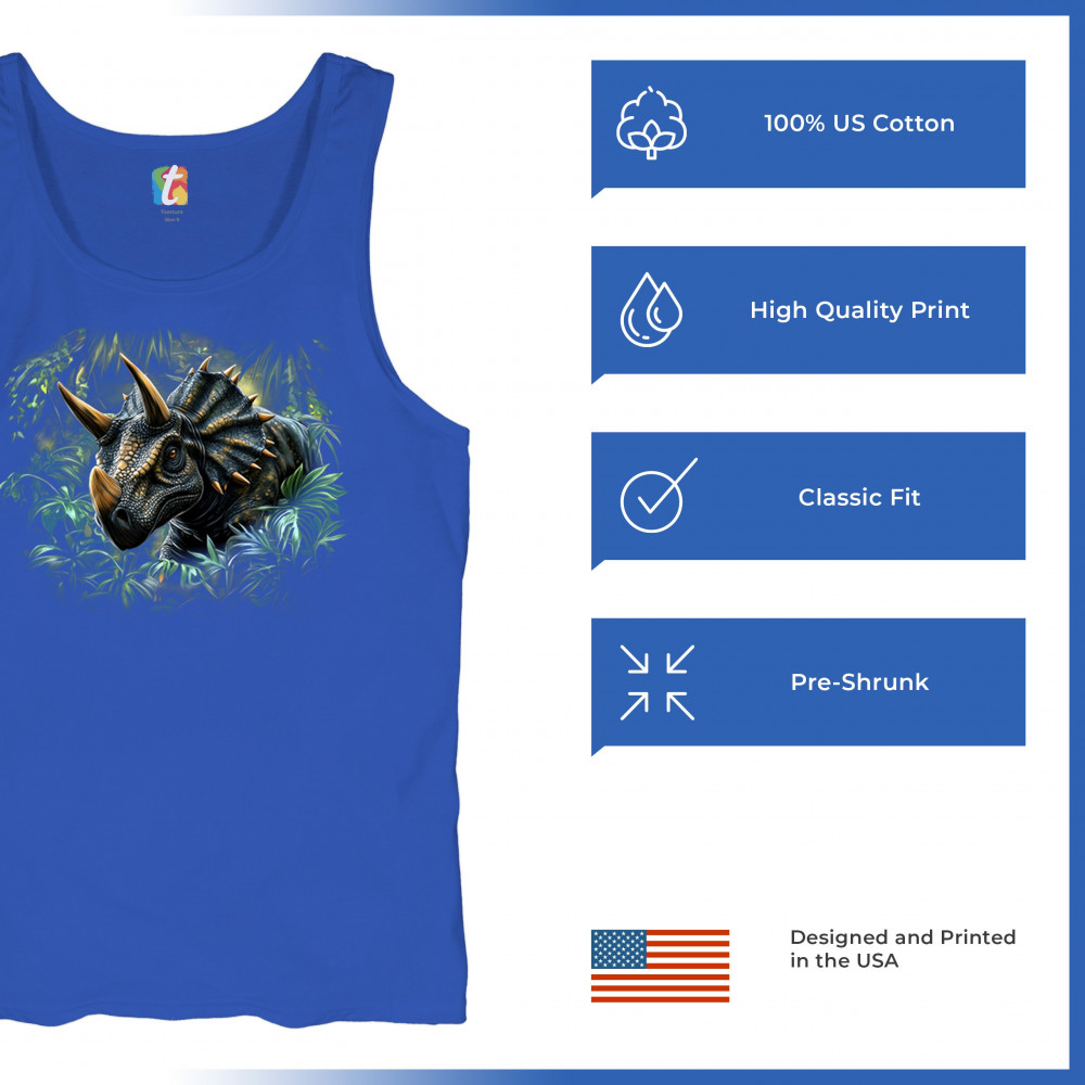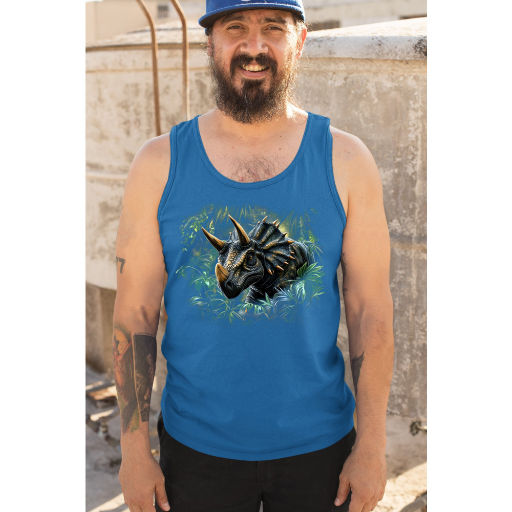 Realistic triceratops in jungle setting. Great for dino fans, fossil lovers, Jurassic exhibits, and prehistoric outdoor adventures.