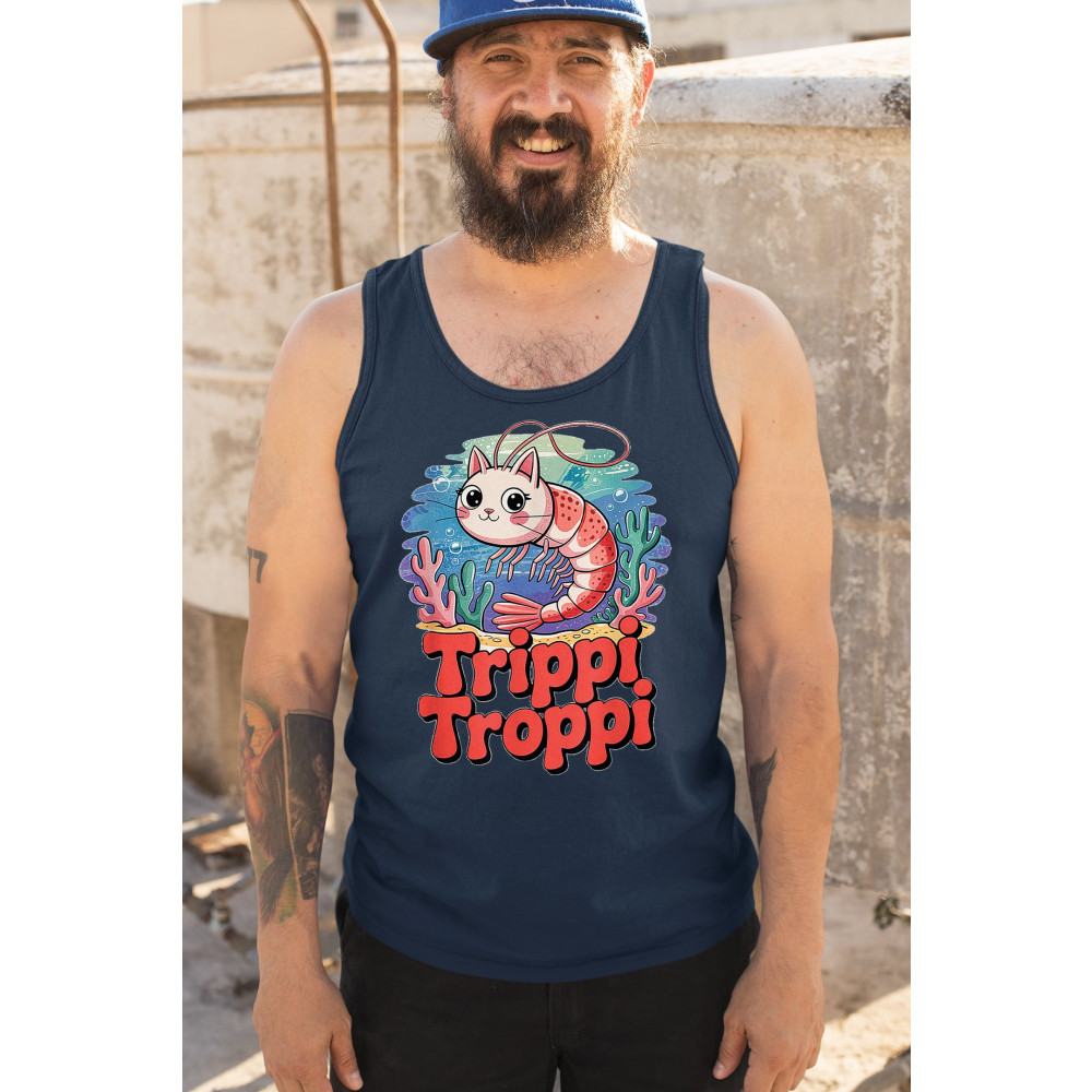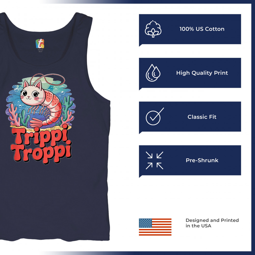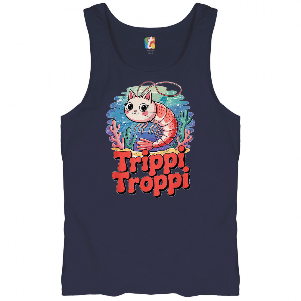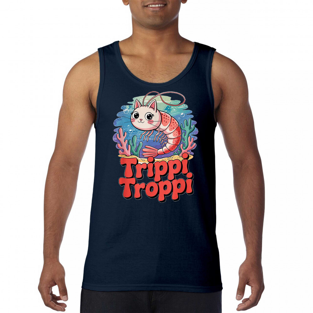 Dive deep into absurdity with Trippi Troppi—a surreal shrimp-cat fusion straight out of Italian Brainrot territory. This design captures cursed animal chaos, weirdcore visuals, TikTok meme culture, and underwater fever dream aesthetics. Made for Gen Z humor addicts, ocean meme fans, and ironic fashion lovers alike.