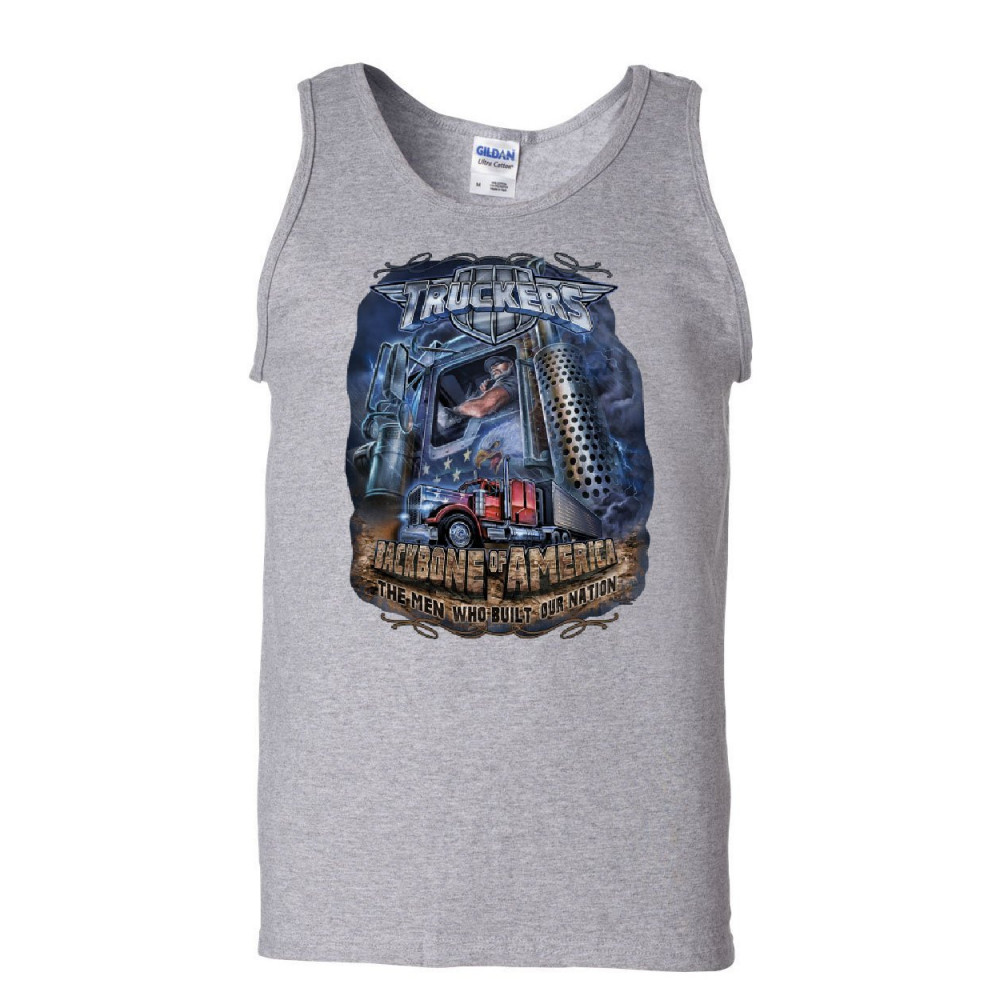 TRUCKERS - BACKBONE OF AMERICA truckers backbone of america tank top truck driver hauler diesel sleeveless gray