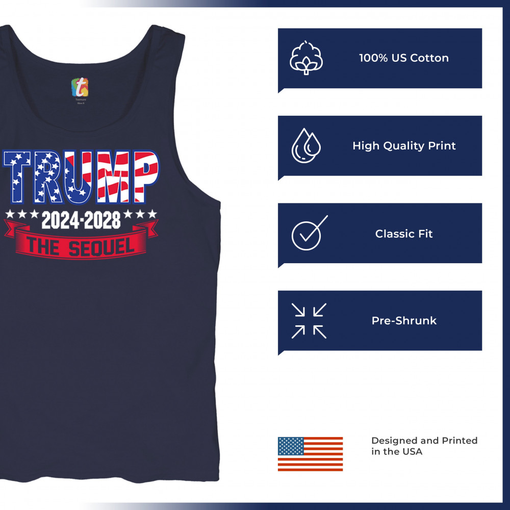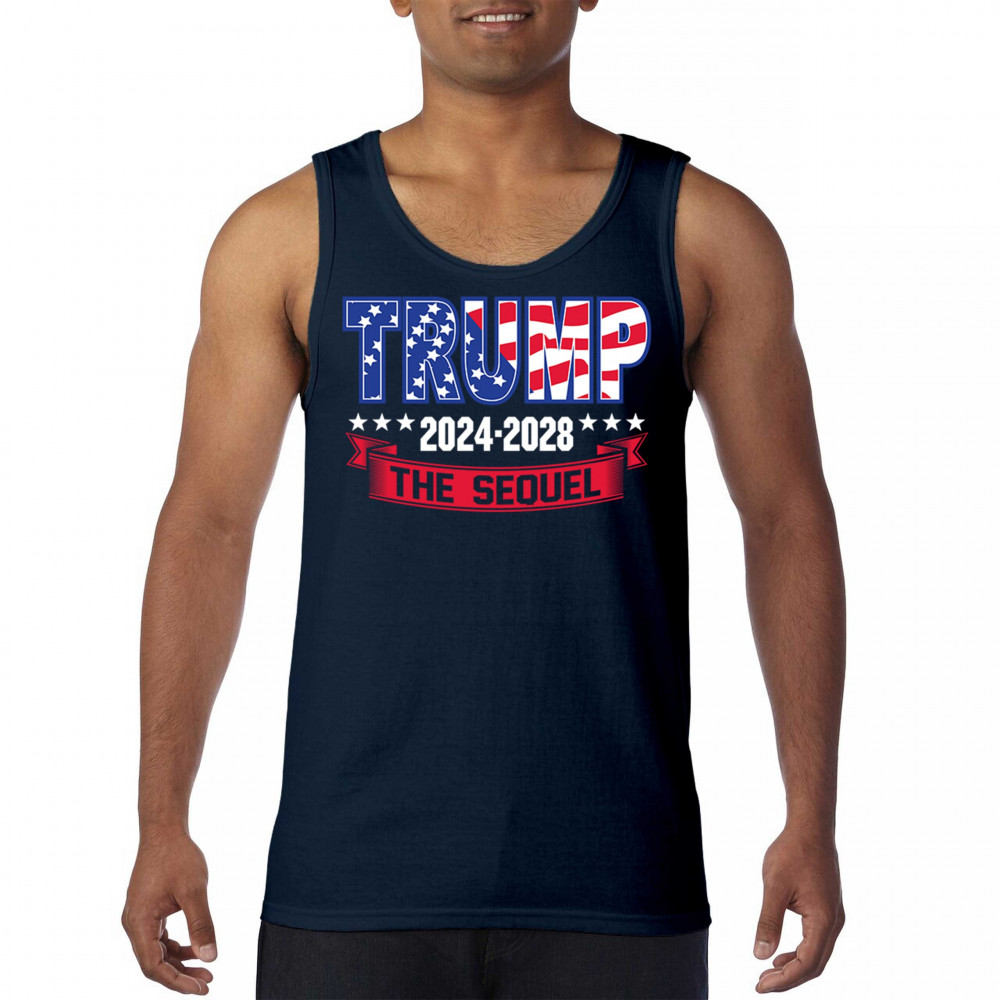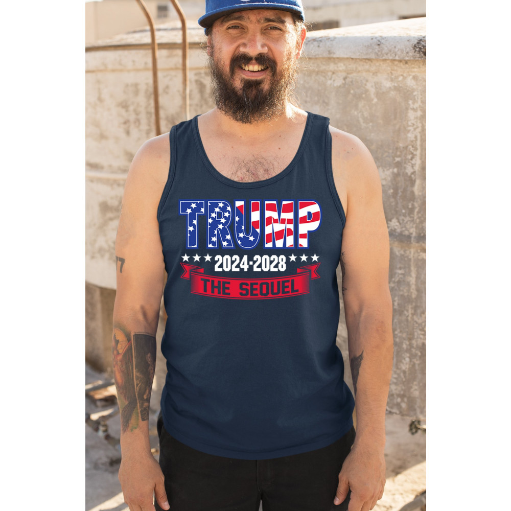 Stand with Trump for 2024-2028 in "The Sequel" design, celebrating America First, conservative values, and 4 more years of patriotic vision.