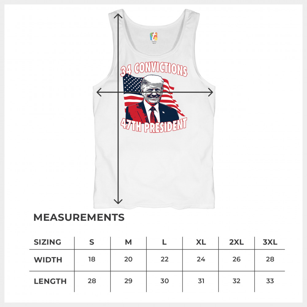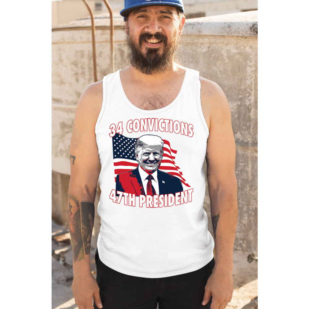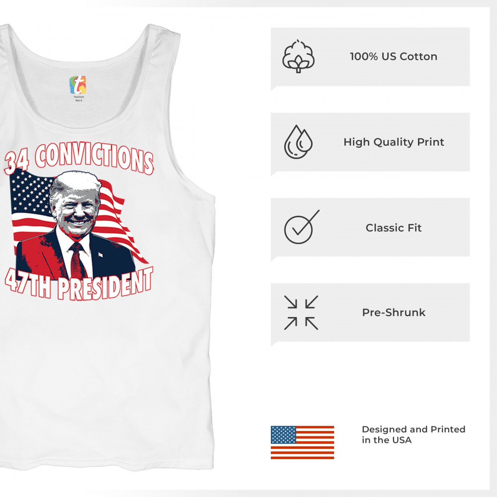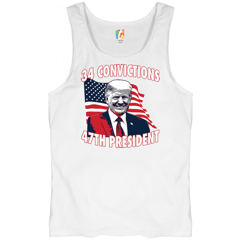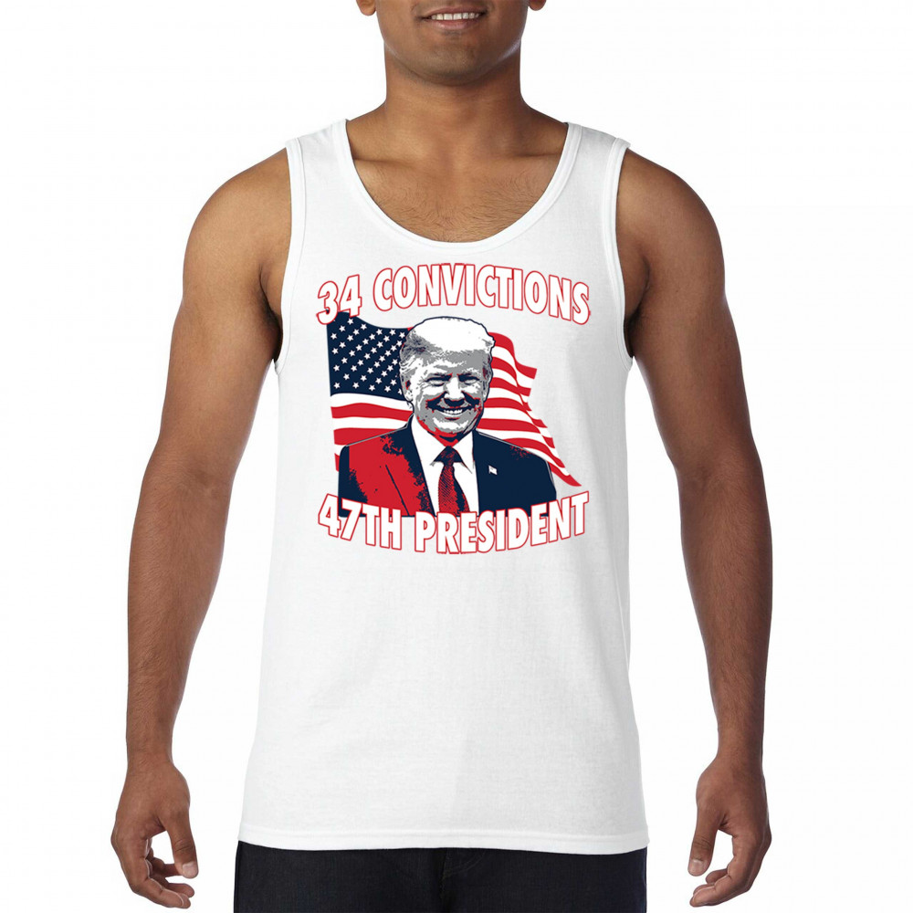 Show your support for Trump's 2024 campaign with the "34 Convictions, 47th President" design. Perfect for rallies, patriotic events, and conservative gatherings.