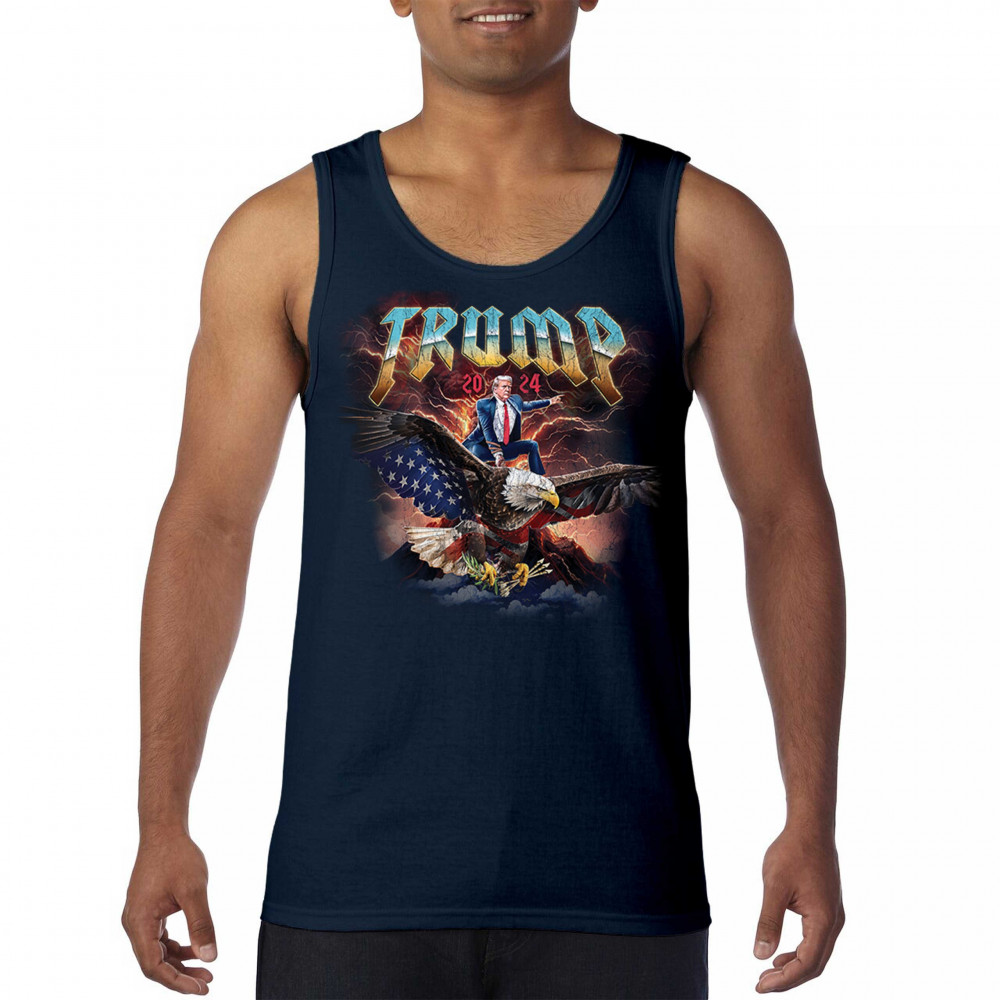 Stand out with our "Trump 2024" design featuring Trump riding an eagle. Perfect for rallies and patriotic events. Show your support with pride and confidence.
