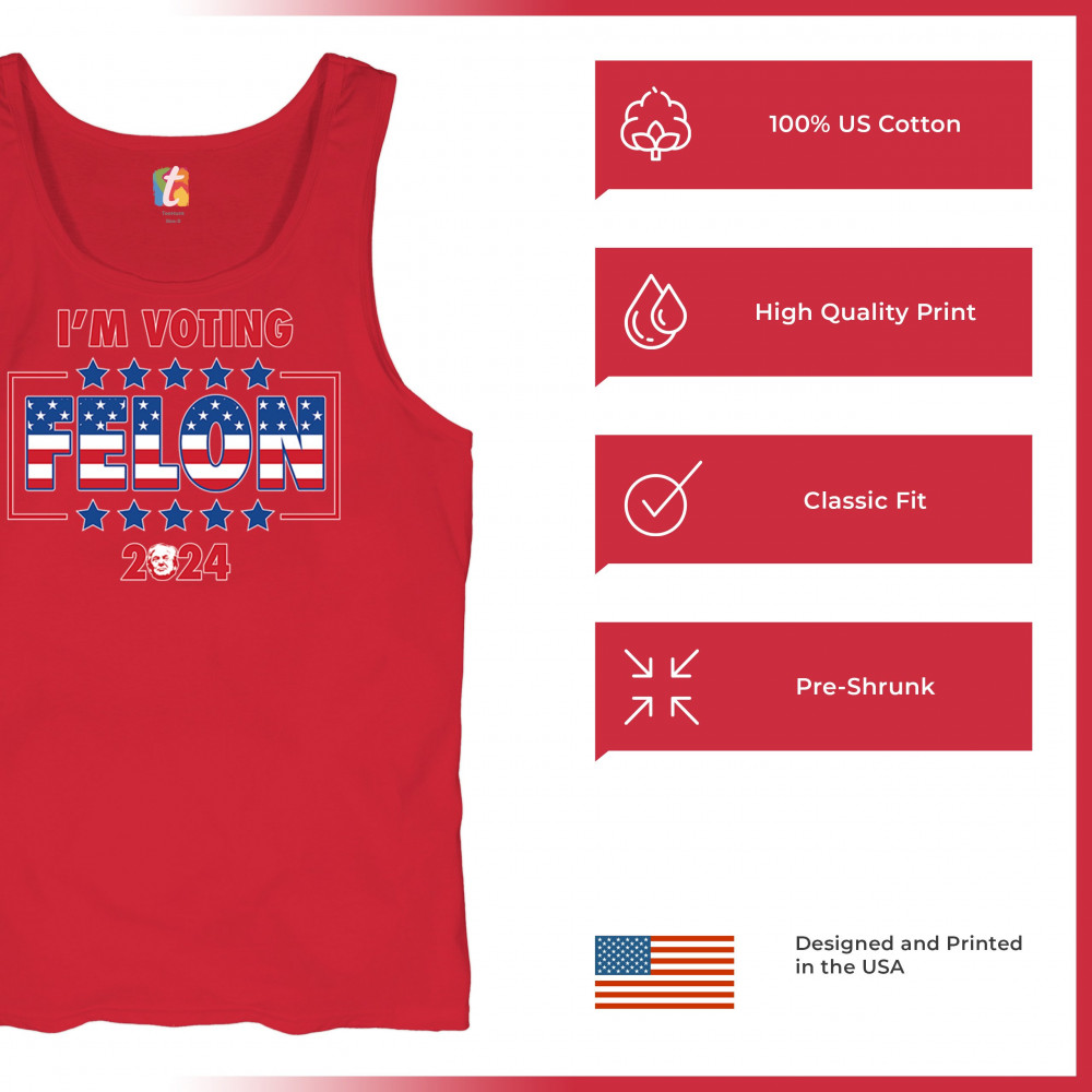 Show your support with the "I'm Voting Felon 2024" design, perfect for conservative patriots and Trump supporters. Featuring an American flag motif.