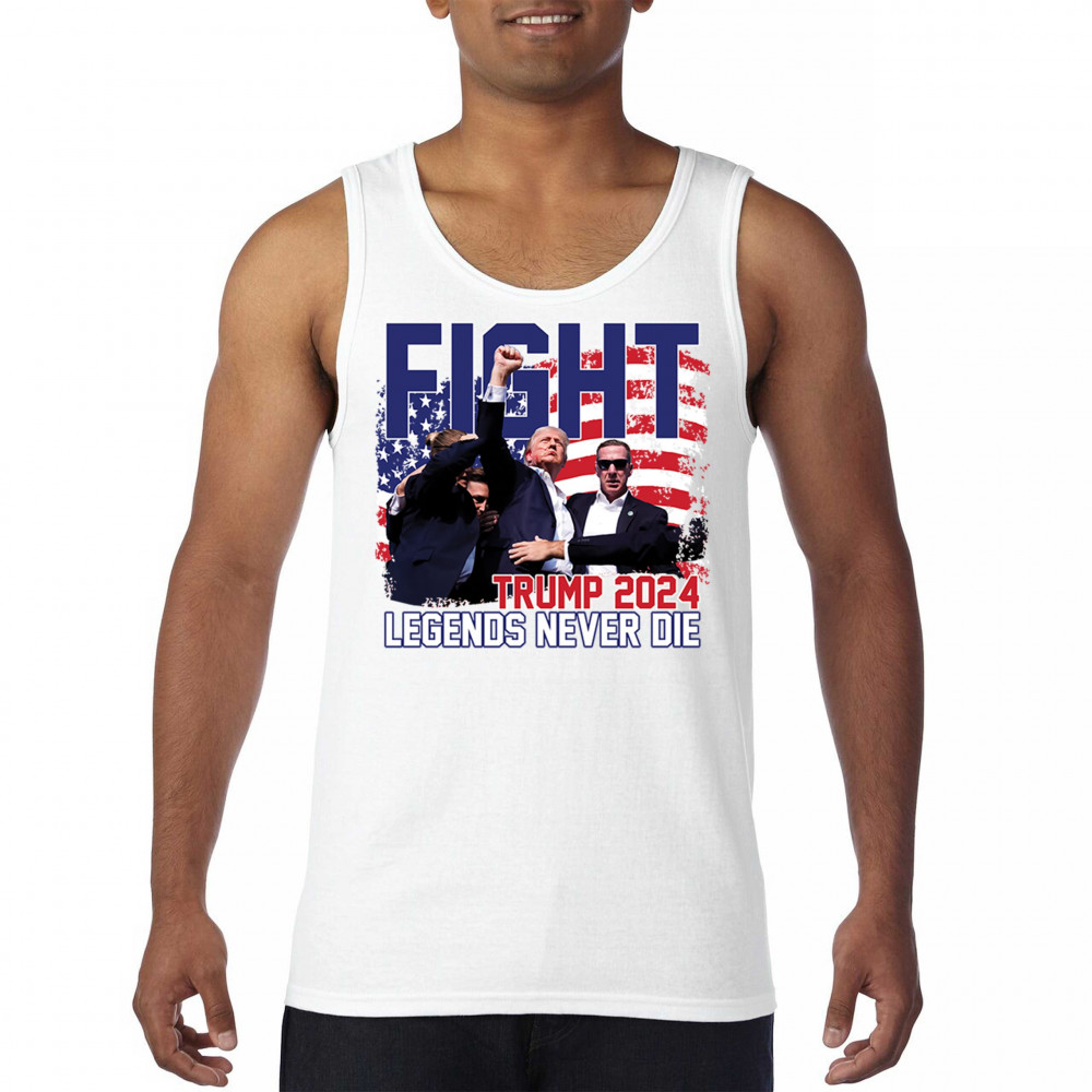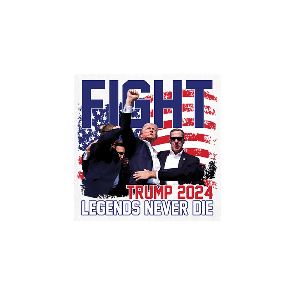 Stand proud and show your support for the Trump 2024 campaign with our exclusive "Fight" design. This striking graphic features Donald Trump alongside the inspiring phrase "Legends Never Die," set against a patriotic American flag backdrop. Ideal for rally events and everyday wear, this design captures the spirit of determination and victory. It’s perfect for those who stand by conservative values and trust in Trump's leadership. Celebrate your patriotism and join fellow supporters in making a bold statement for America's future with this must-have design.