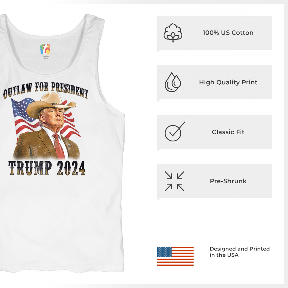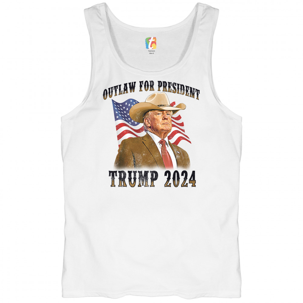 Support Trump with our "Outlaw for President" design. Featuring Trump in a cowboy hat, this piece symbolizes strength amidst political challenges. Join the fight for conservative values!