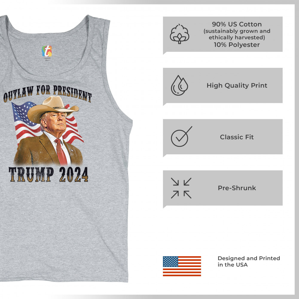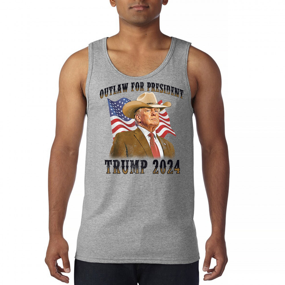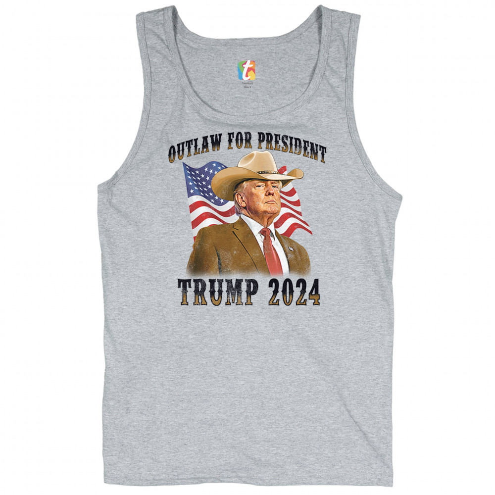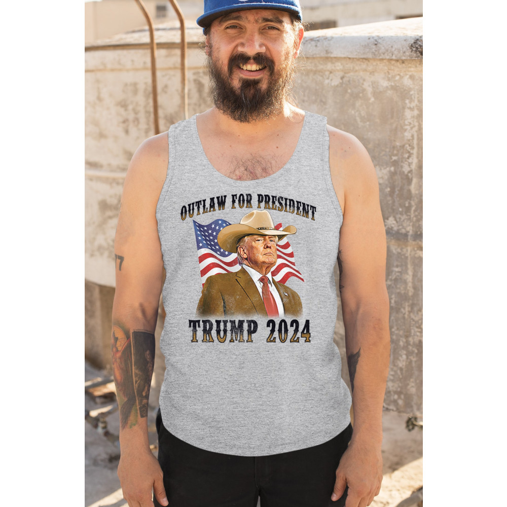 Support Trump with our "Outlaw for President" design. Featuring Trump in a cowboy hat, this piece symbolizes strength amidst political challenges. Join the fight for conservative values!