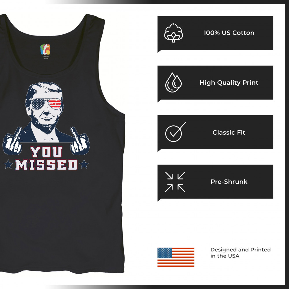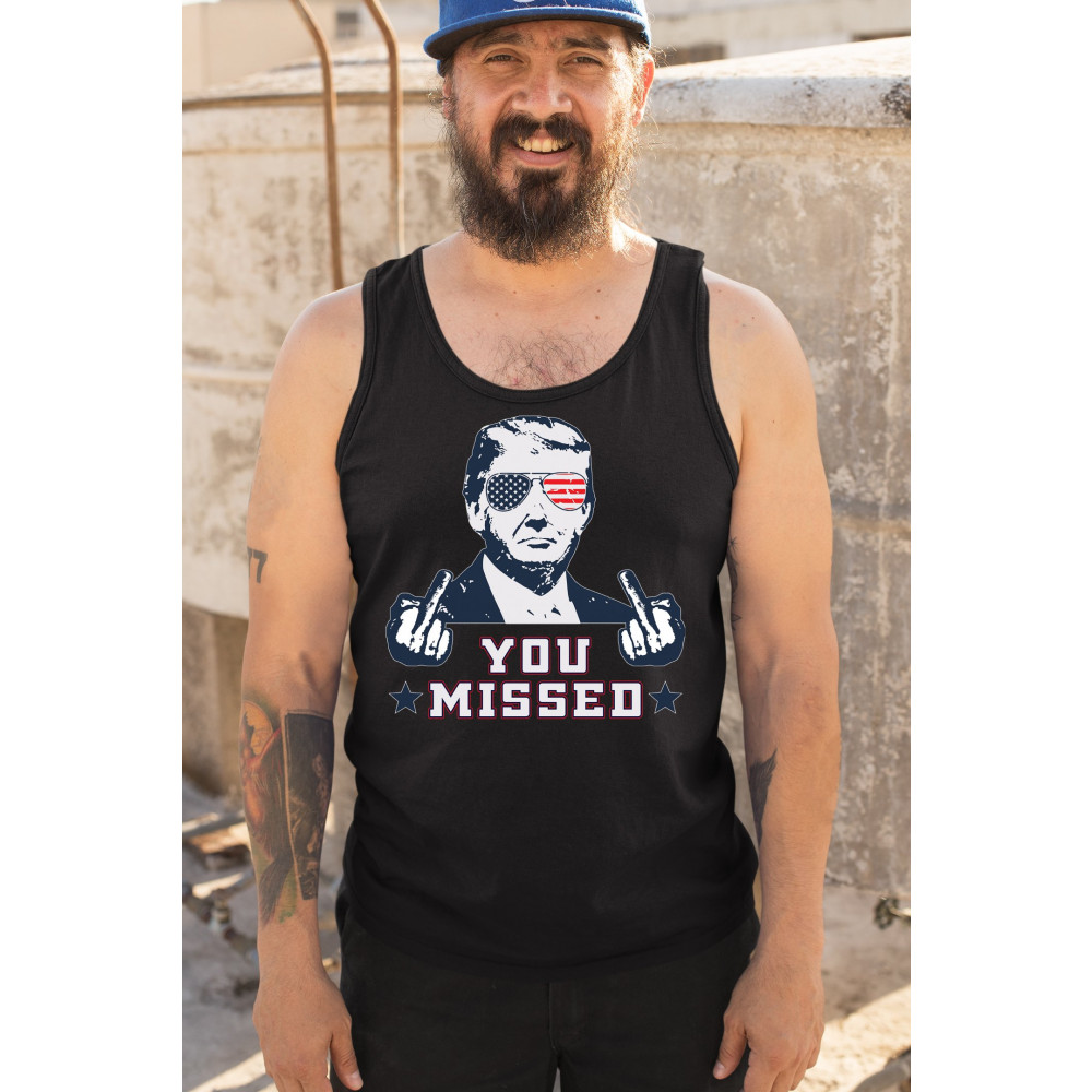 Celebrate Trump's resilience with this bold "You Missed" design. Perfect for rallies and political events. Show your unwavering support for conservative values.