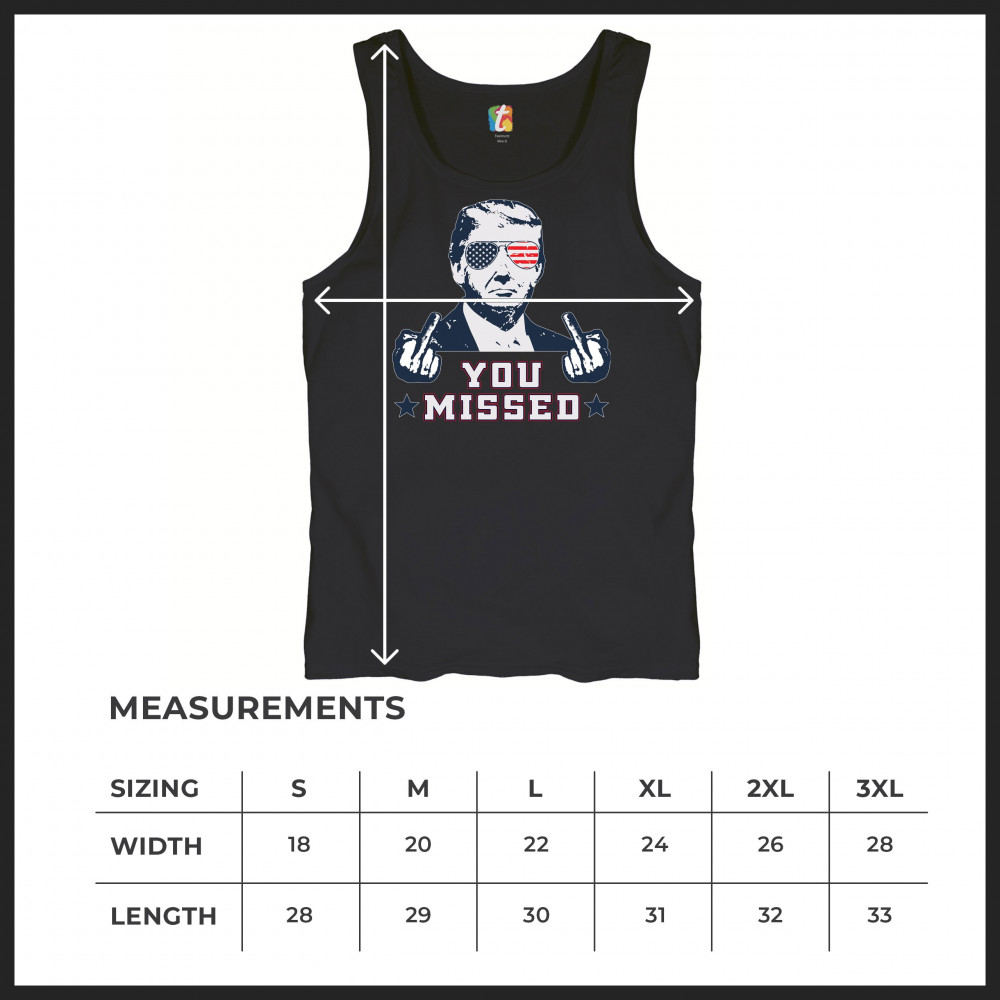 Express your patriotism and support for Donald Trump with this striking "You Missed" design, commemorating his survival of an assassination attempt during a Pennsylvania rally. The design features Trump in American flag sunglasses, defiantly flipping the bird, a bold statement of resilience. Ideal for rallies, political events, or casual wear, it symbolizes strength and unwavering support for conservative values. Show the world where you stand with this unique piece, perfect for any Trump supporter who believes in the America First agenda.