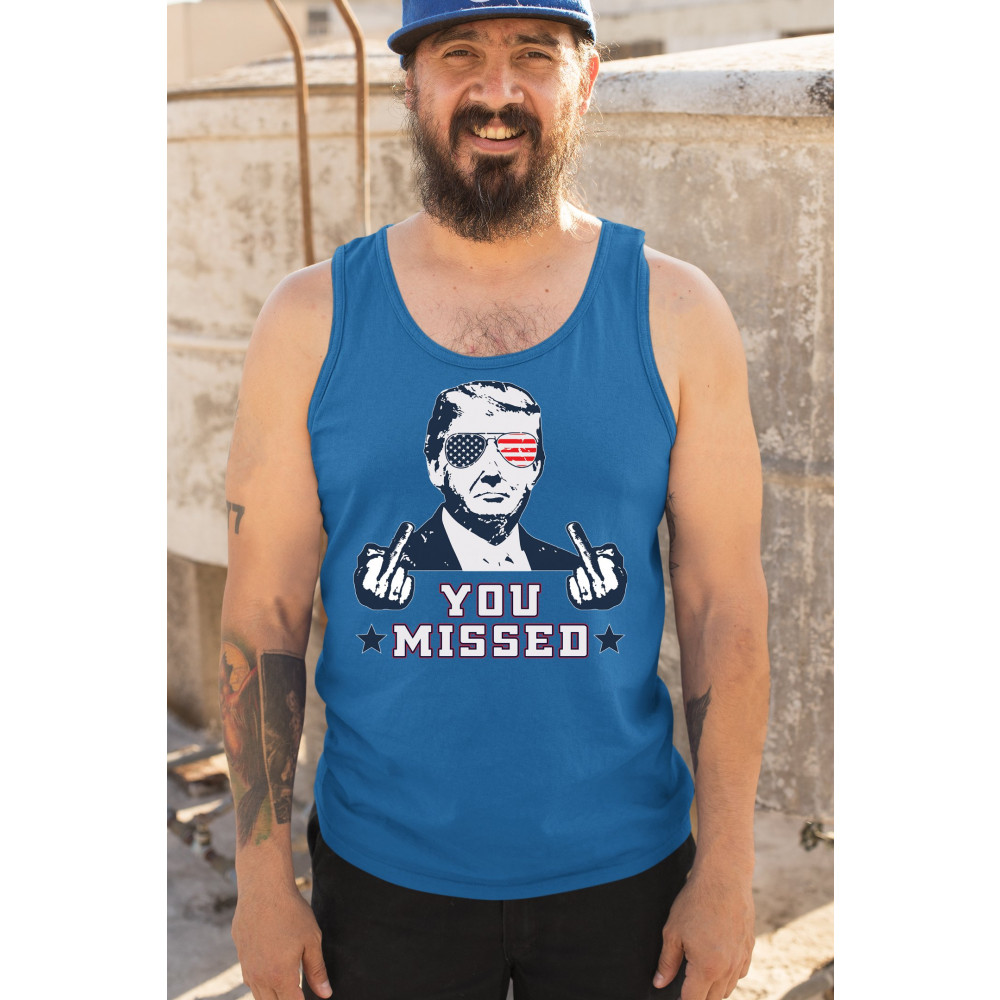 Celebrate Trump's resilience with this bold "You Missed" design. Perfect for rallies and political events. Show your unwavering support for conservative values.