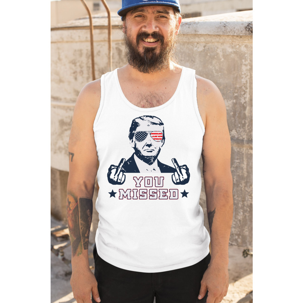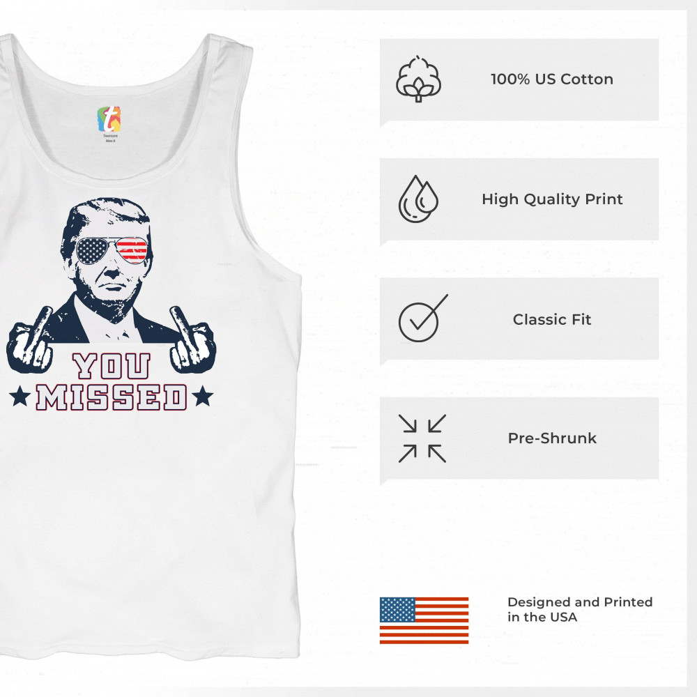 Celebrate Trump's resilience with this bold "You Missed" design. Perfect for rallies and political events. Show your unwavering support for conservative values.