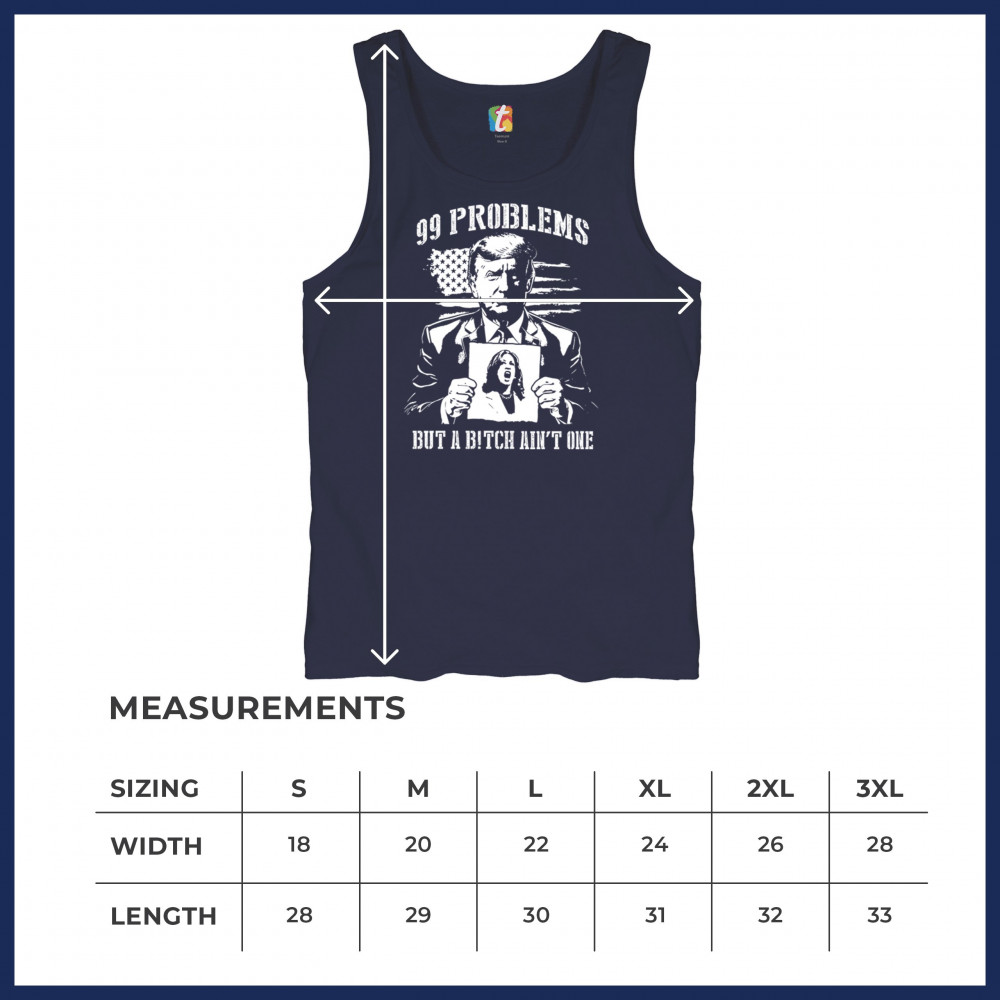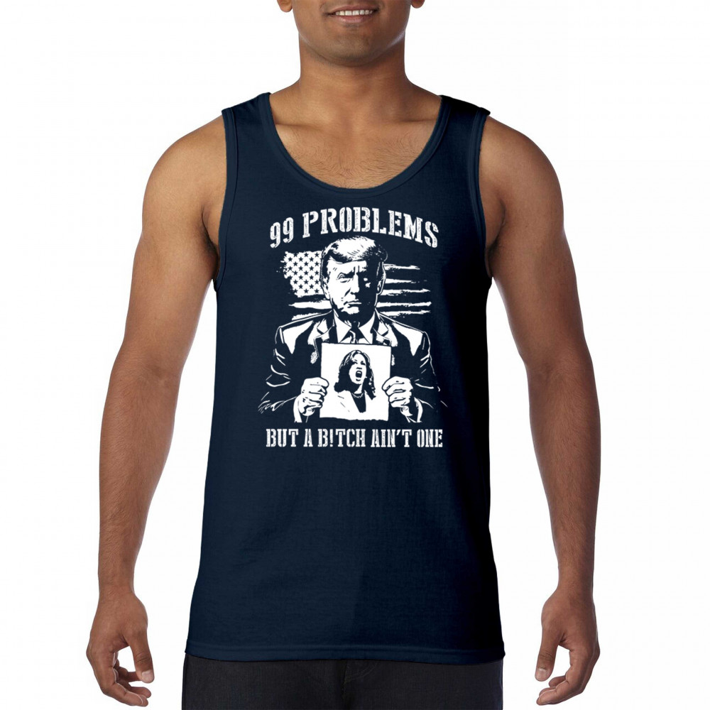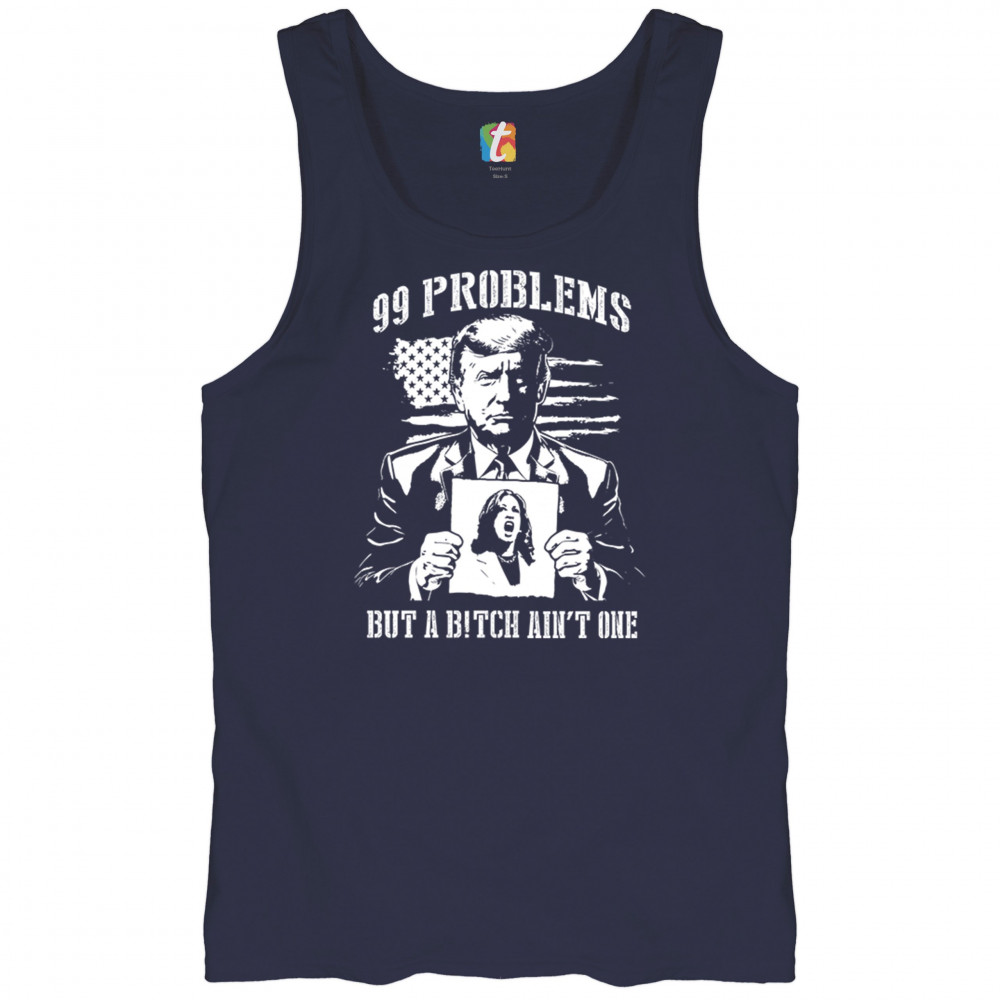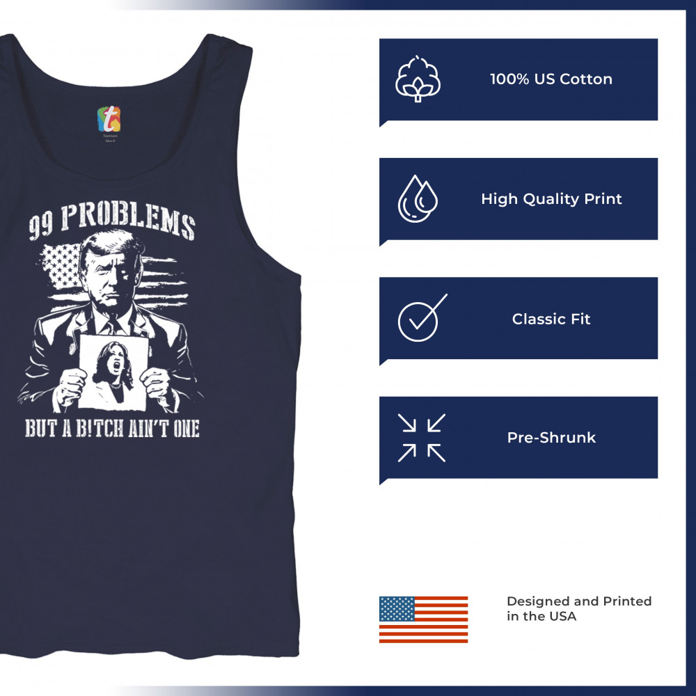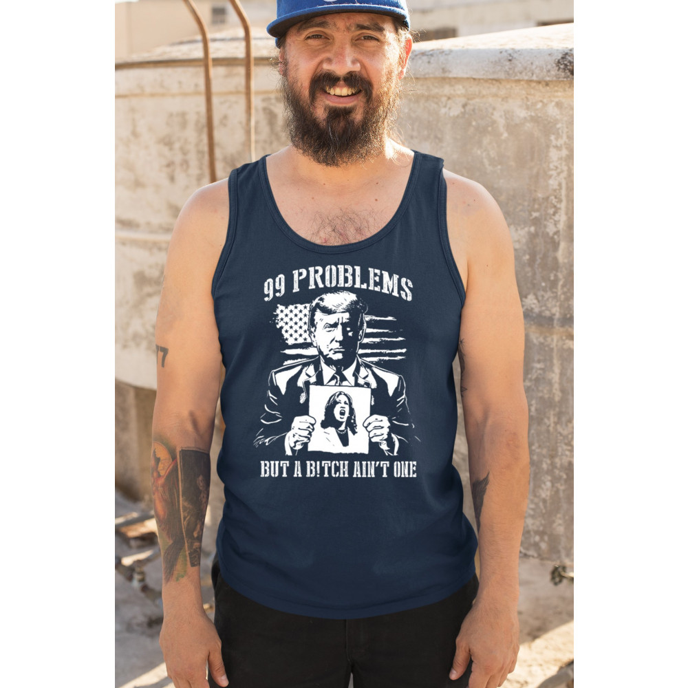 Bold conservative "99 Problems But a B*tch Ain’t One" design featuring Donald J. Trump and an American flag. Perfect for proud Republicans and patriots.
