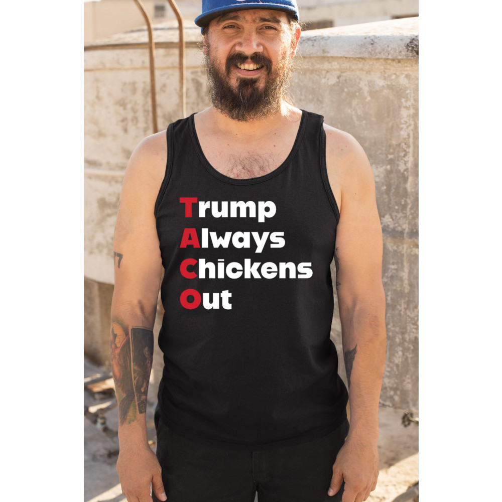 Trump Always Chickens Out is bold protest fashion for anti-dictator activists, political satire fans, and no kings supporters.