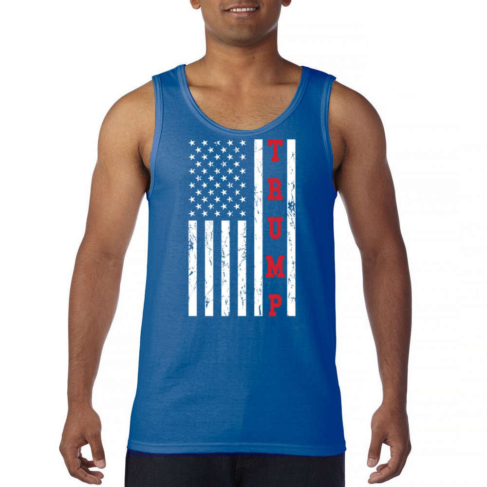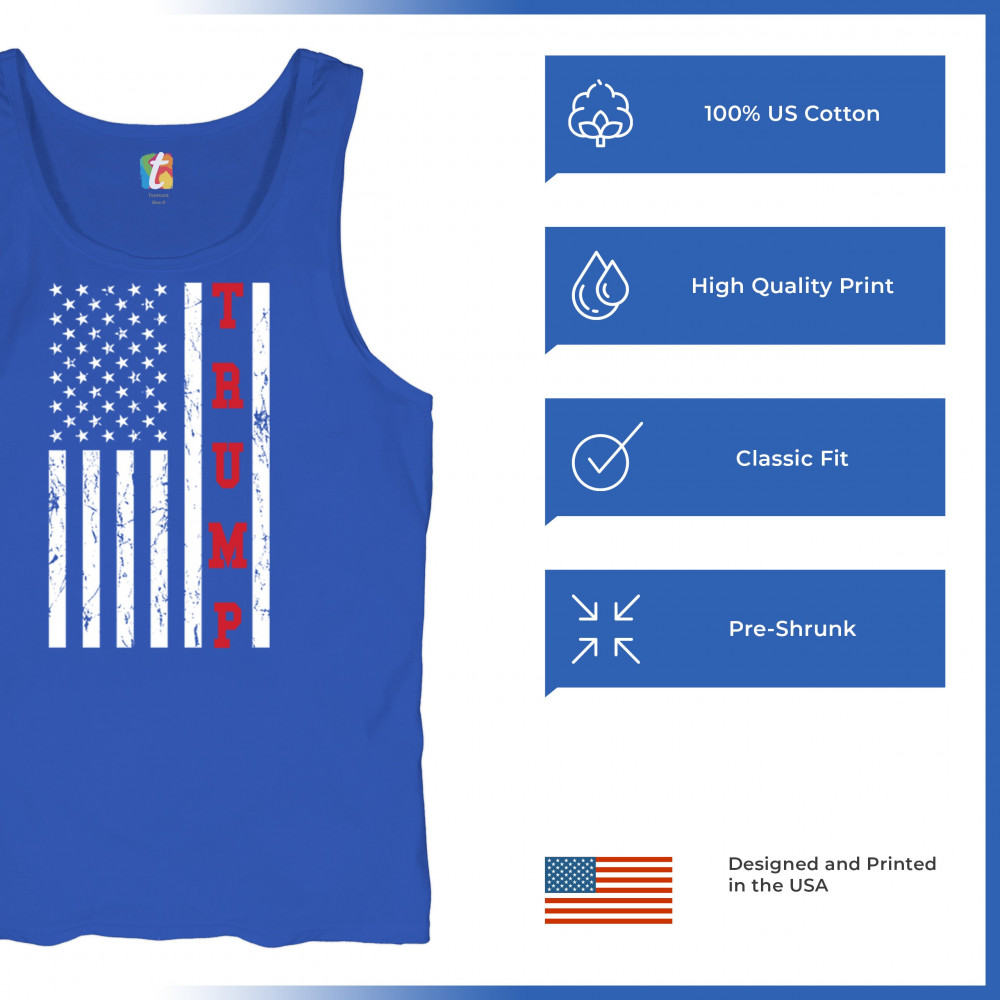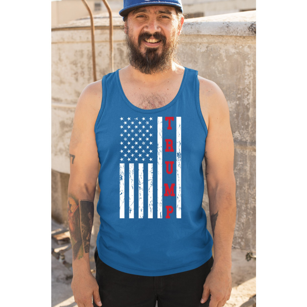 how your unwavering support for America First policies with our Trump 2024 Flag graphic t-shirt. This vintage-inspired design blends the iconic American Flag with bold 'Trump 2024' lettering, symbolizing a commitment to conservative values and the MAGA movement. Whether you're part of the Trump Train or a proud supporter, this shirt is a statement of victory and determination. Let's Go Brandon? More like Let's Go America! Join the Rebelution and make your voice heard with this Republican-themed merchandise.