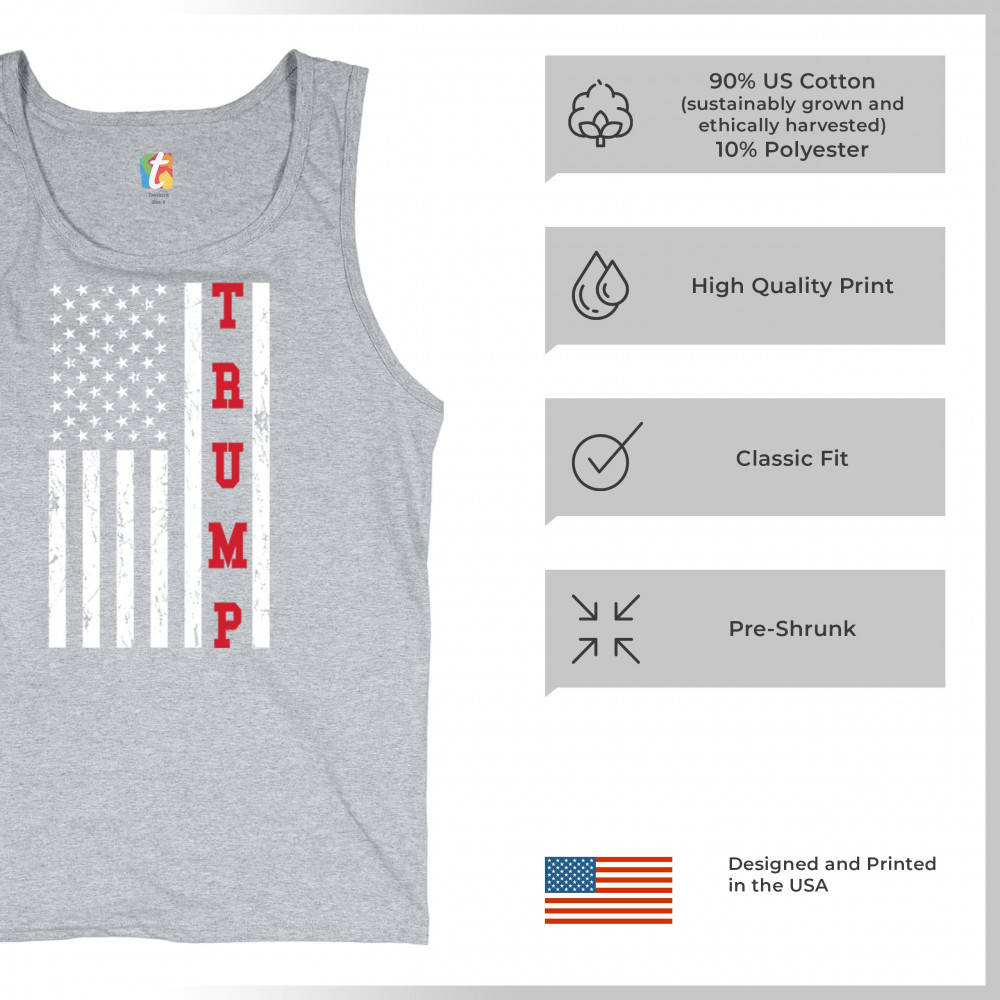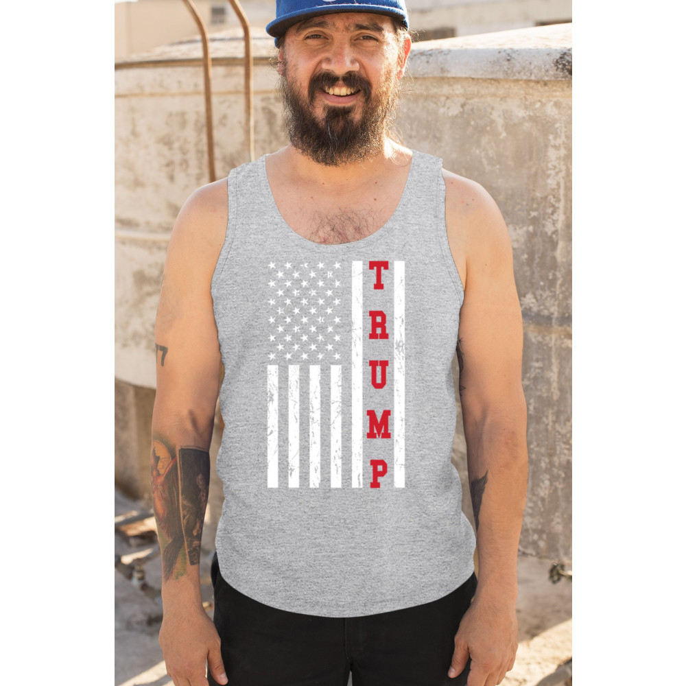 how your unwavering support for America First policies with our Trump 2024 Flag graphic t-shirt. This vintage-inspired design blends the iconic American Flag with bold 'Trump 2024' lettering, symbolizing a commitment to conservative values and the MAGA movement. Whether you're part of the Trump Train or a proud supporter, this shirt is a statement of victory and determination. Let's Go Brandon? More like Let's Go America! Join the Rebelution and make your voice heard with this Republican-themed merchandise.