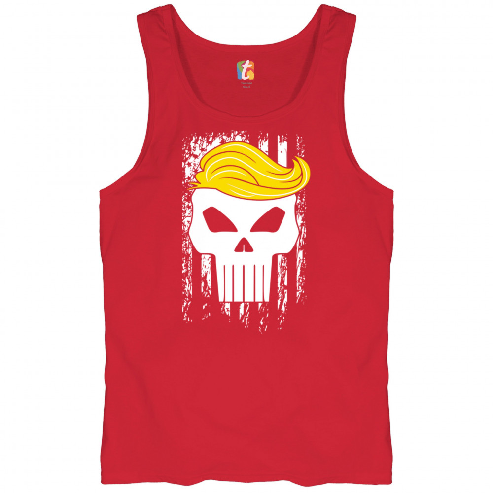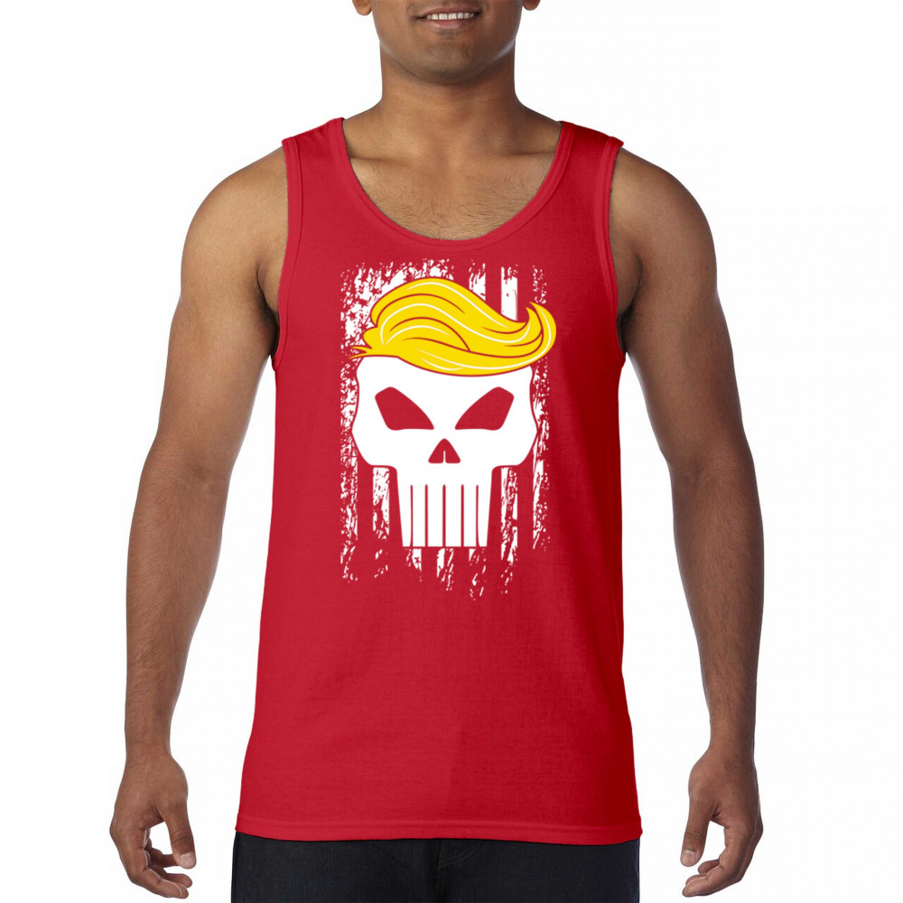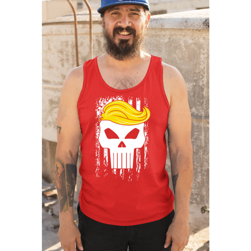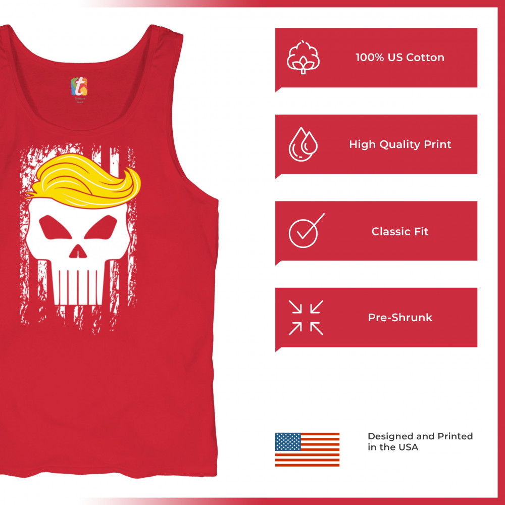 Explore our exclusive design - a symbol of unwavering support for America. Featuring a distressed flag and a skull with Trump's hair, it's perfect for patriotic conservatives