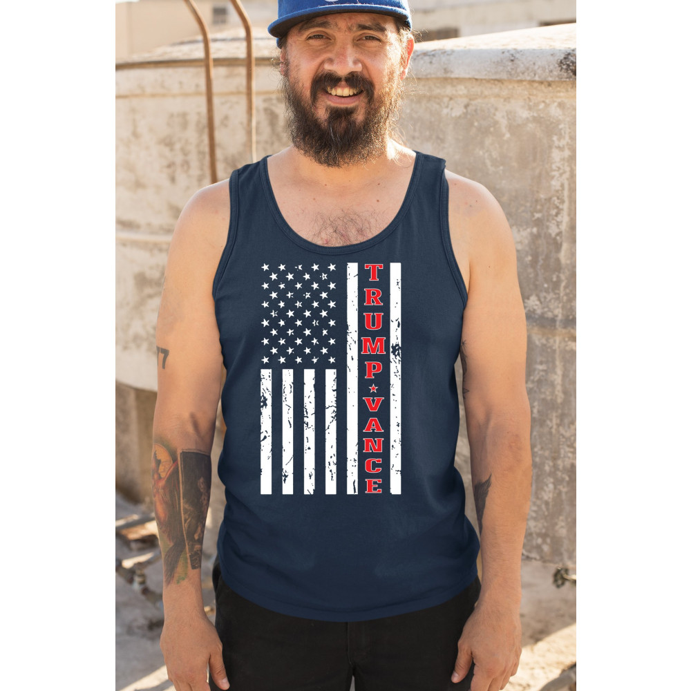 Support the Trump Vance 2024 campaign in style with this bold design featuring a rustic American flag and strong typography. Perfect for political rallies, events, or casual wear, this design is made from premium materials to ensure both comfort and durability. Whether you're attending a rally or just showing your support in daily life, this piece helps you make a powerful statement. It's also an excellent gift idea for fellow conservatives and Trump supporters who want to express their patriotic pride.