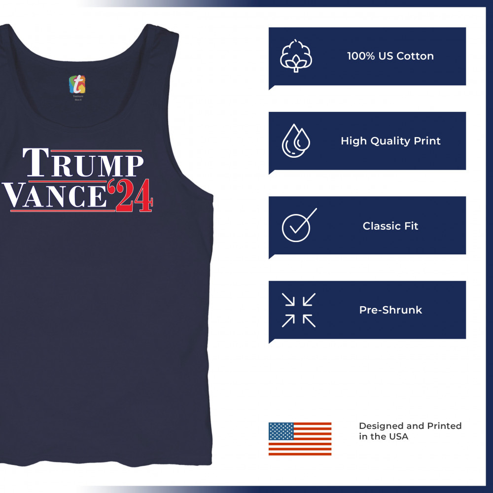 Show your support for Trump Vance 2024 with this patriotic design featuring bold red, white, and blue colors and a flag background. Perfect for rallies and conservative events.